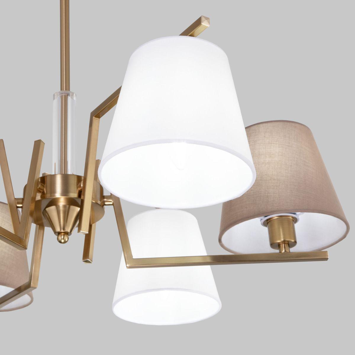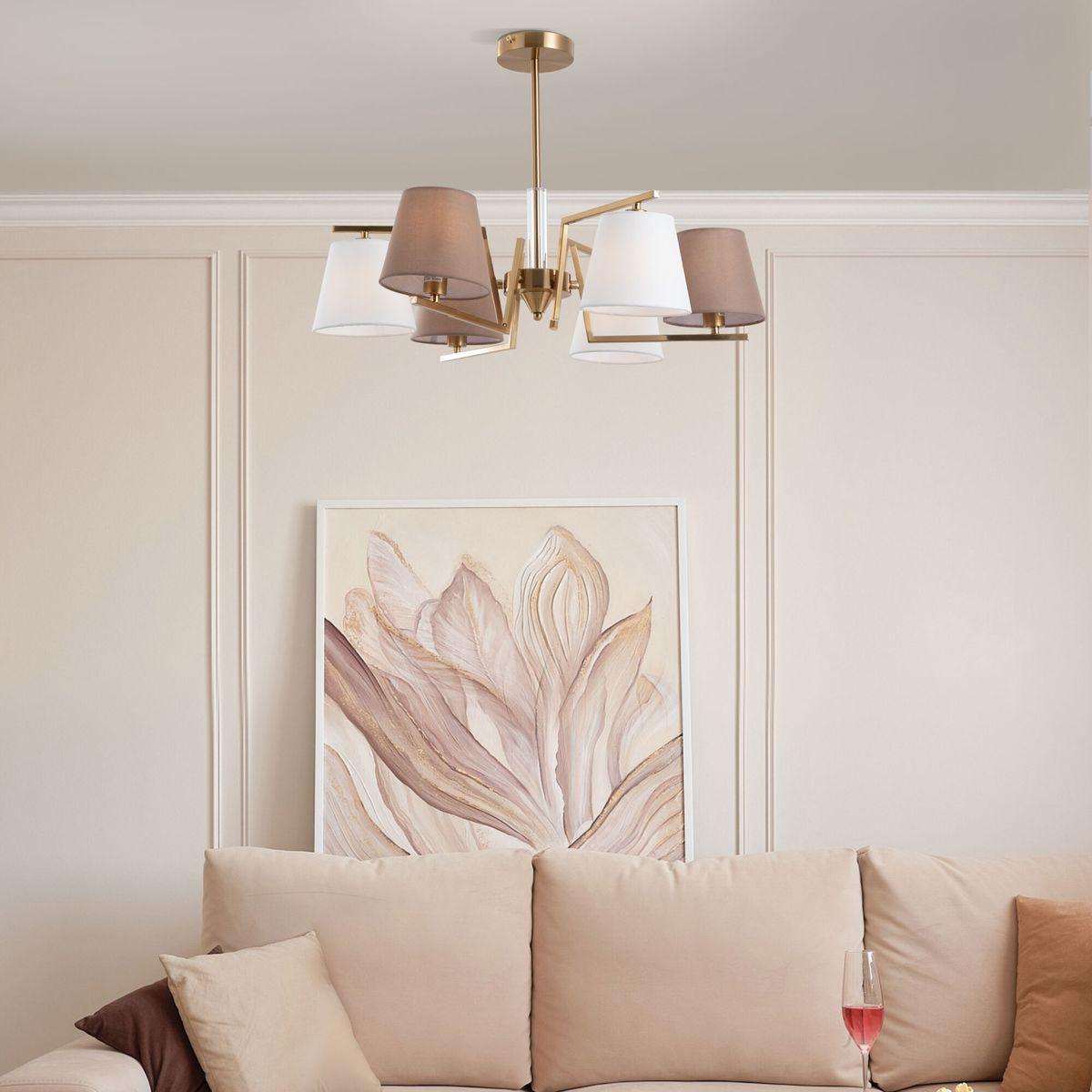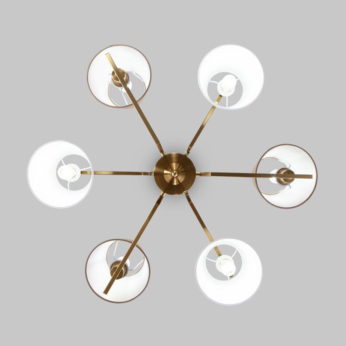 Потолочная люстра Eurosvet Ozark 60149/6 латунь от Китайского бренда из коллекции Ozark будет удачно смотреться в спальни в современном стиле. Светильник выполнен из ткани с плафонами в форме .