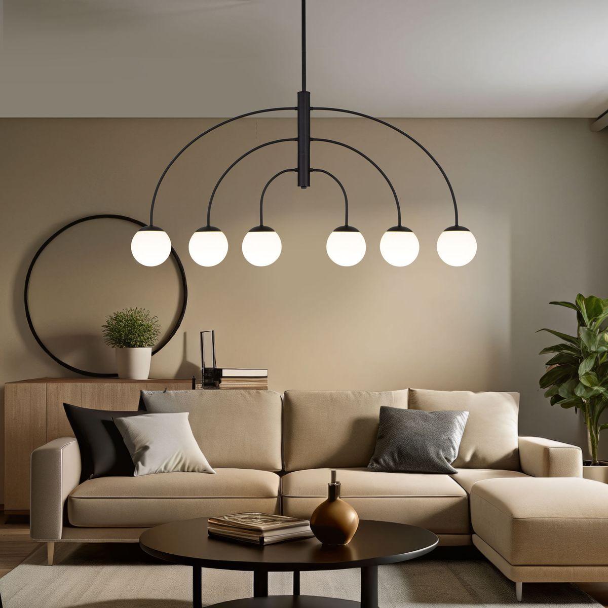 Производитель светильника рекомендует для устройства 6 ламп накаливания с цоколем E27 и мощностью 40 W, что позволит осветить помещение площадью 12 кв.м. Габариты изделия: высота – 1550 мм, диаметр – мм.