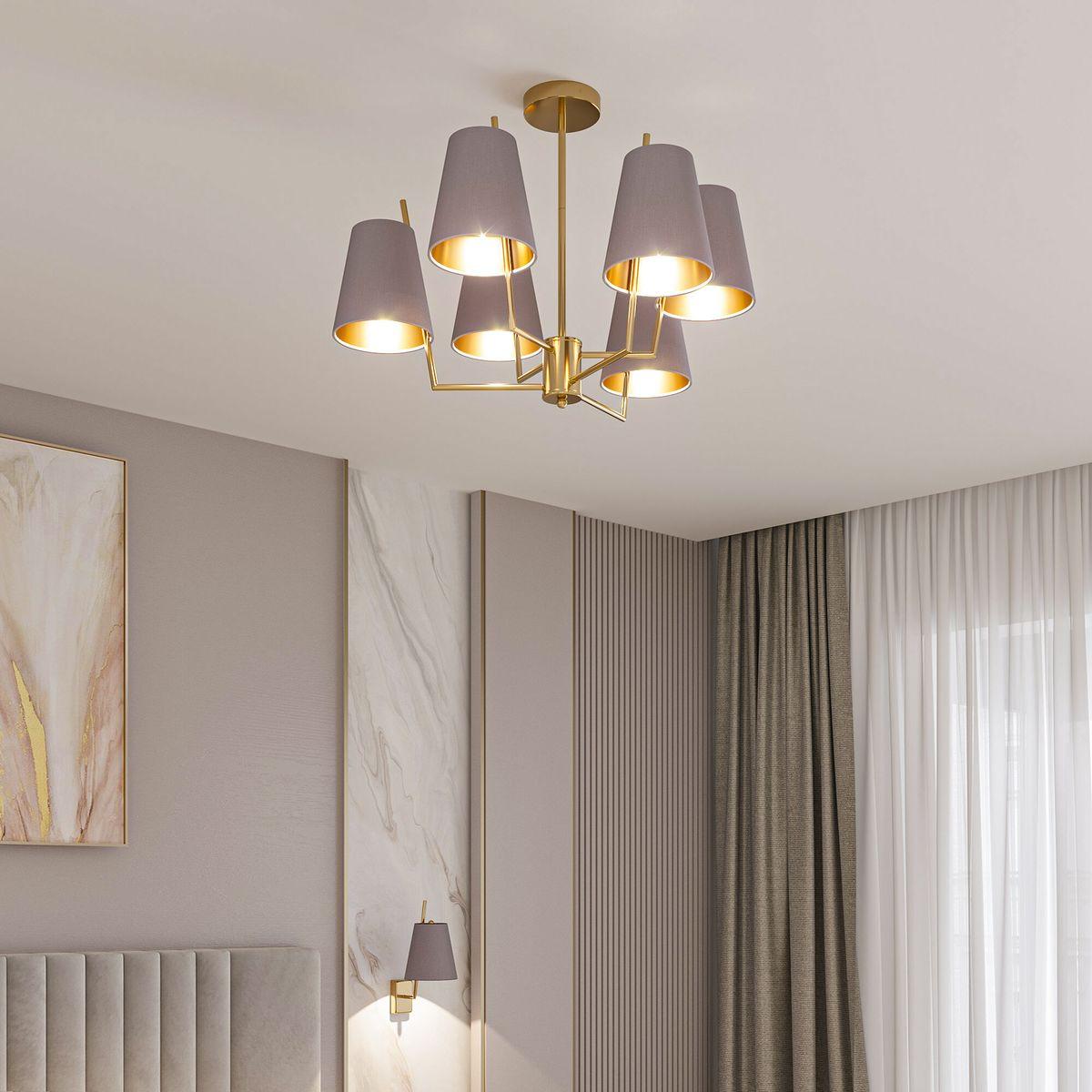 Подвесная люстра Eurosvet Topanga 60173/6 латунь a069017 от Китайского бренда из коллекции Topanga будет удачно смотреться в стиле модерн. Светильник выполнен из ткани с плафонами в форме .