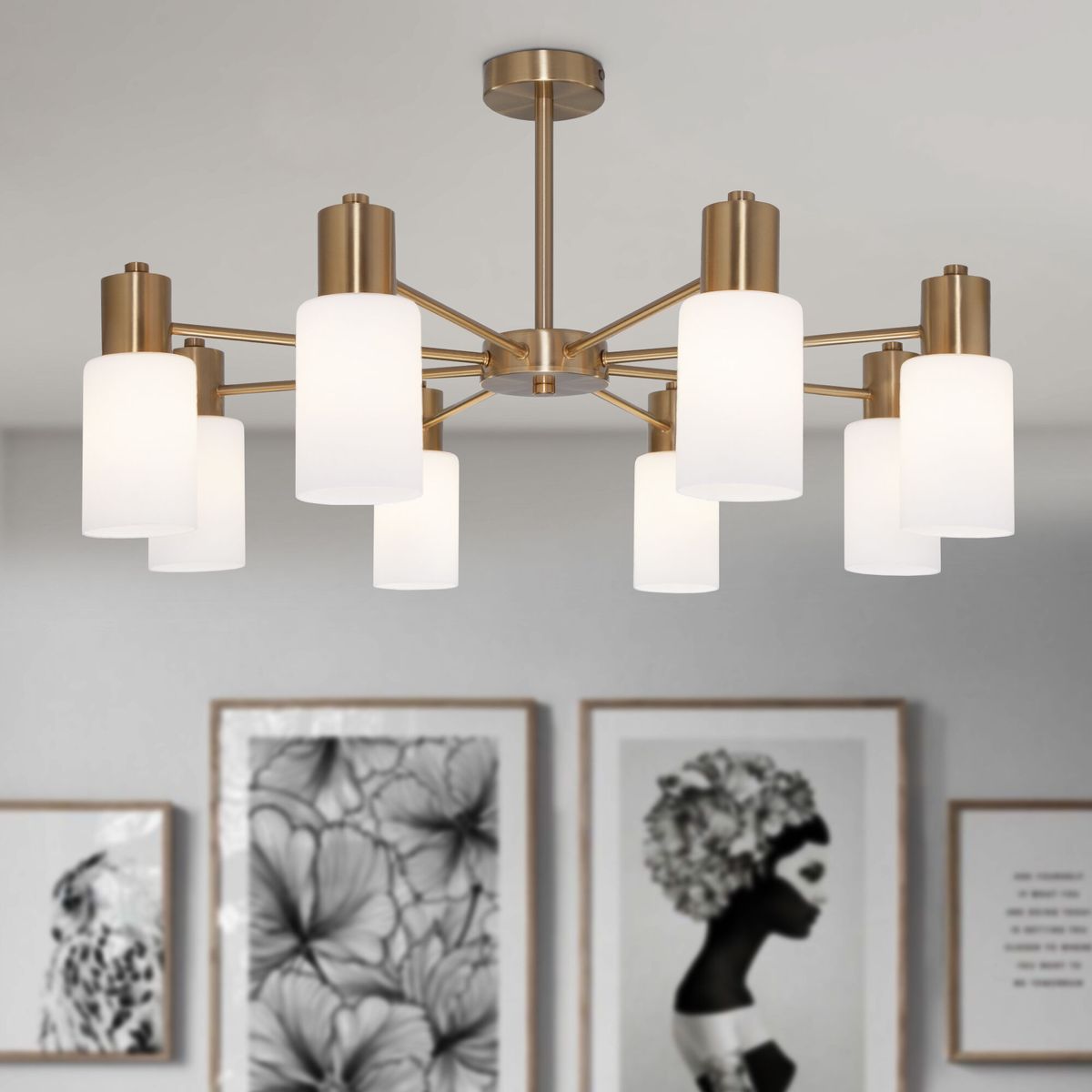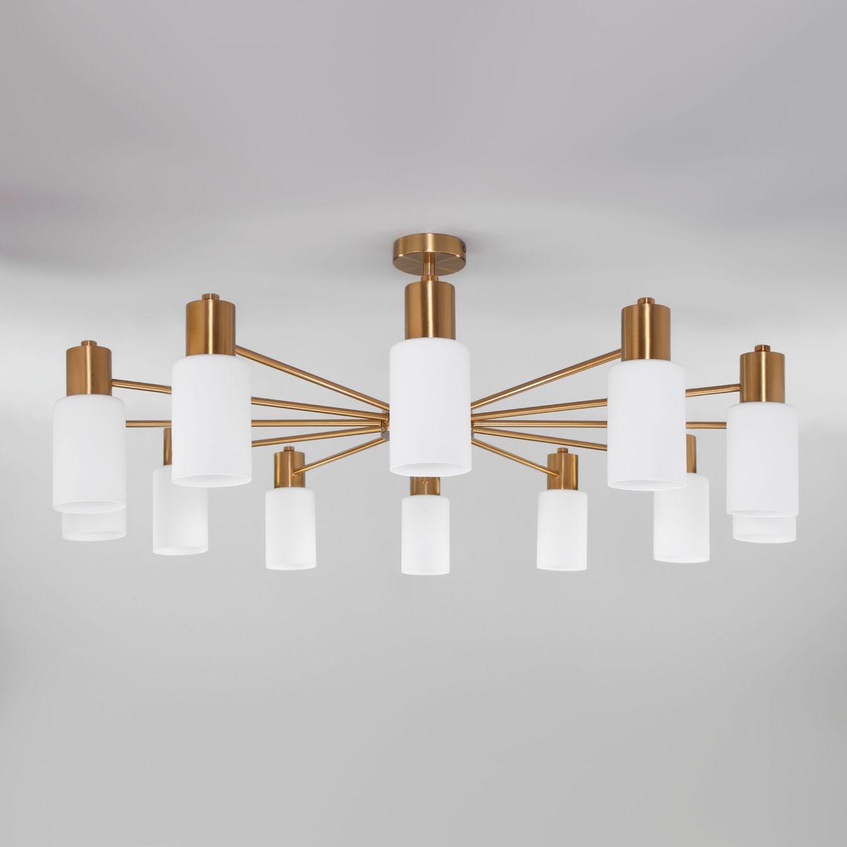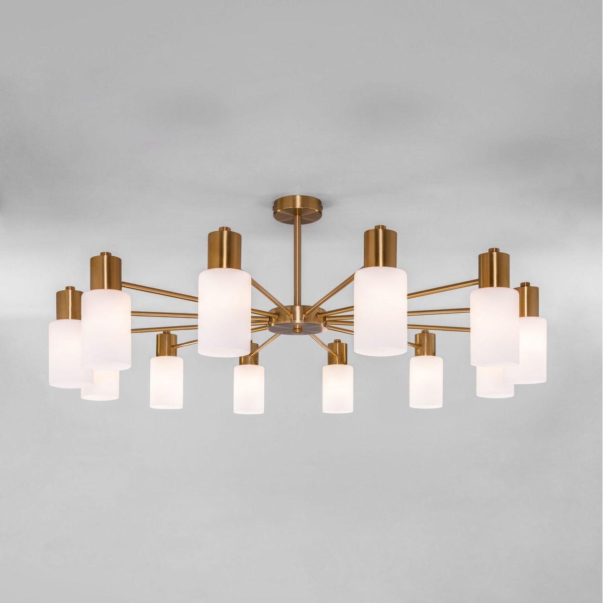 Потолочная люстра Eurosvet Vegga 70160/12 латунь Smart от Китайского бренда из коллекции Vegga будет удачно смотреться в гостиной в стиле модерн. Светильник выполнен из стекла с плафонами в форме белого цвета.