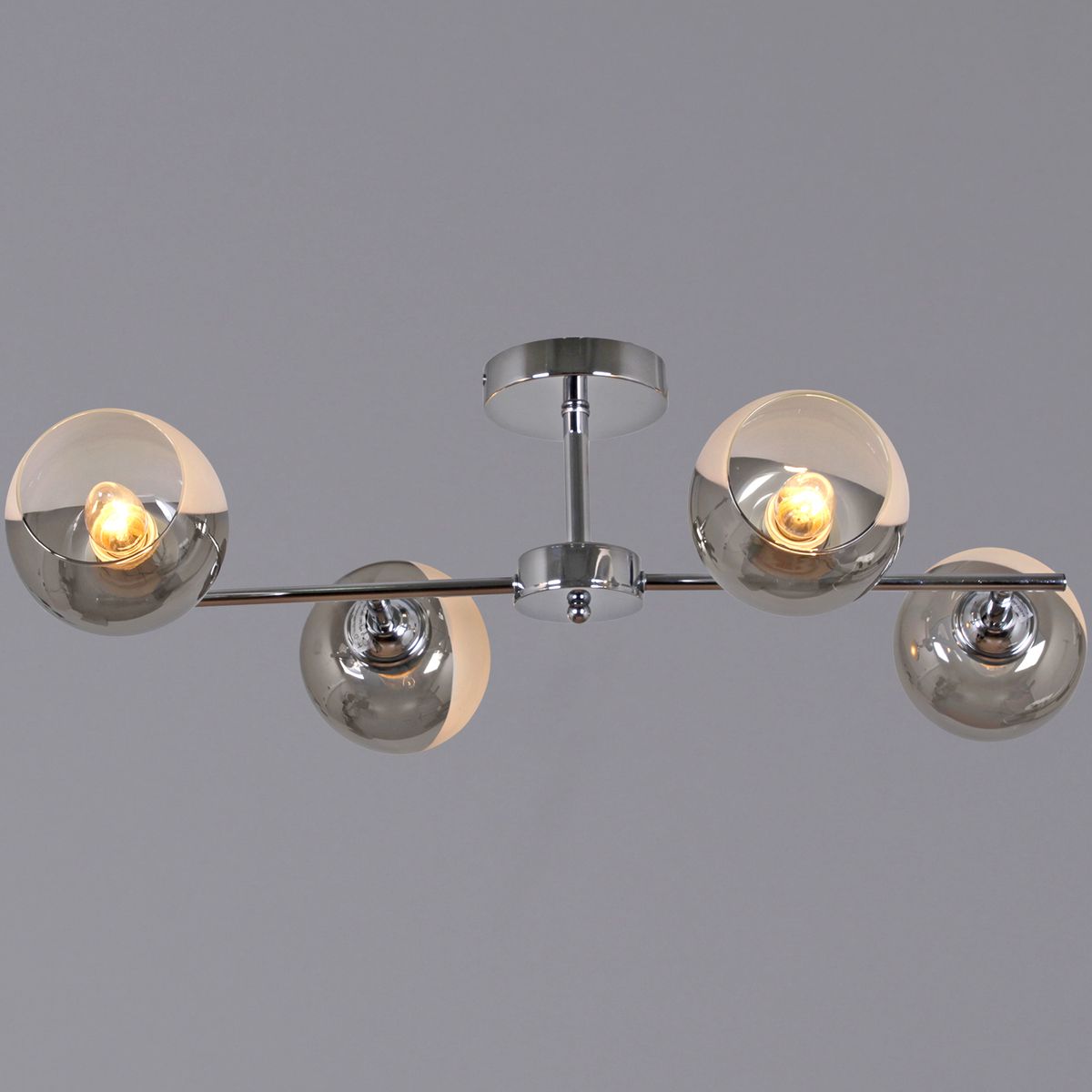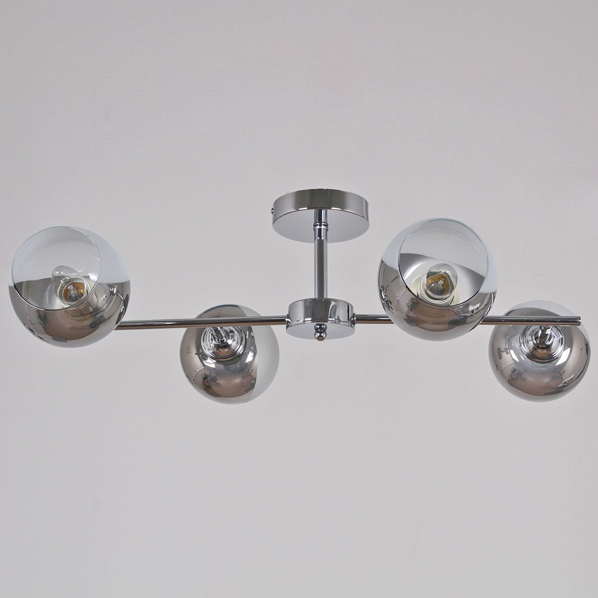 Производитель светильника рекомендует для устройства 4 лампы накаливания с цоколем E27 и мощностью 60 W, что позволит осветить помещение площадью 24 кв.м. Габариты изделия: высота – 220 мм, диаметр – мм.