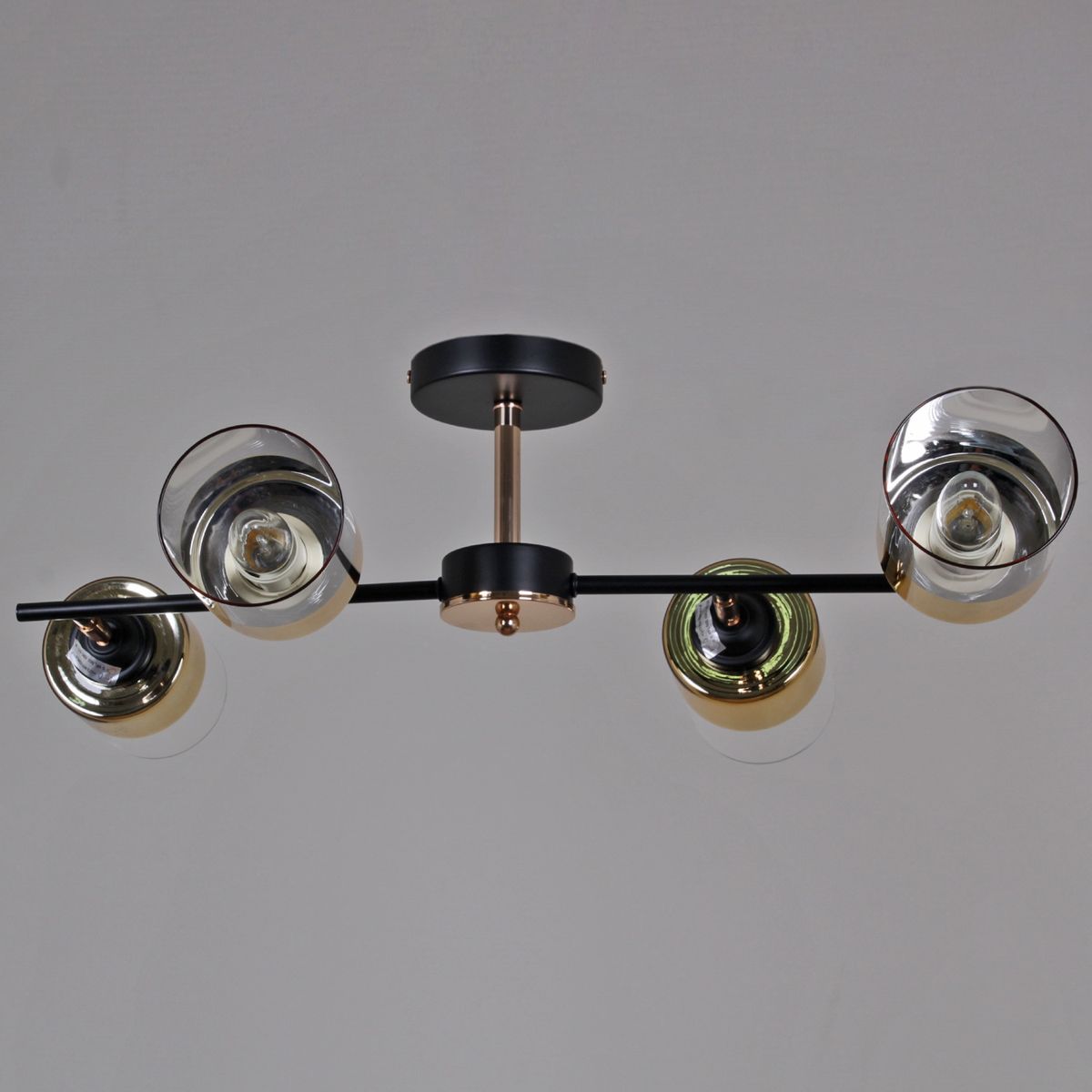 Производитель светильника рекомендует для устройства 4 лампы накаливания с цоколем E27 и мощностью 60 W, что позволит осветить помещение площадью 24 кв.м. Габариты изделия: высота – 200 мм, диаметр – мм.
