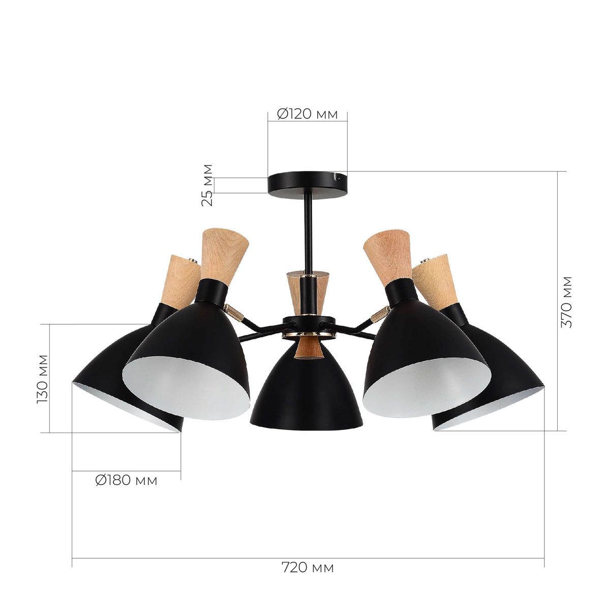 Производитель светильника рекомендует для устройства 5 ламп накаливания с цоколем E14 и мощностью 40 W, что позволит осветить помещение площадью 10 кв.м. Габариты изделия: высота – 370 мм, диаметр – 720 мм.