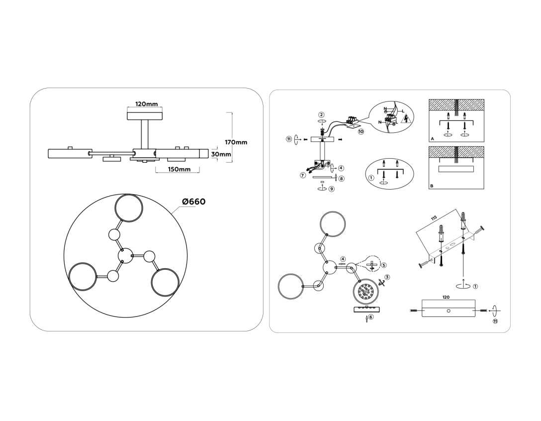 Производитель светильника рекомендует для устройства с цоколем и мощностью W, что позволит осветить помещение площадью кв.м. Габариты изделия: высота – 170 мм, диаметр – 660 мм.