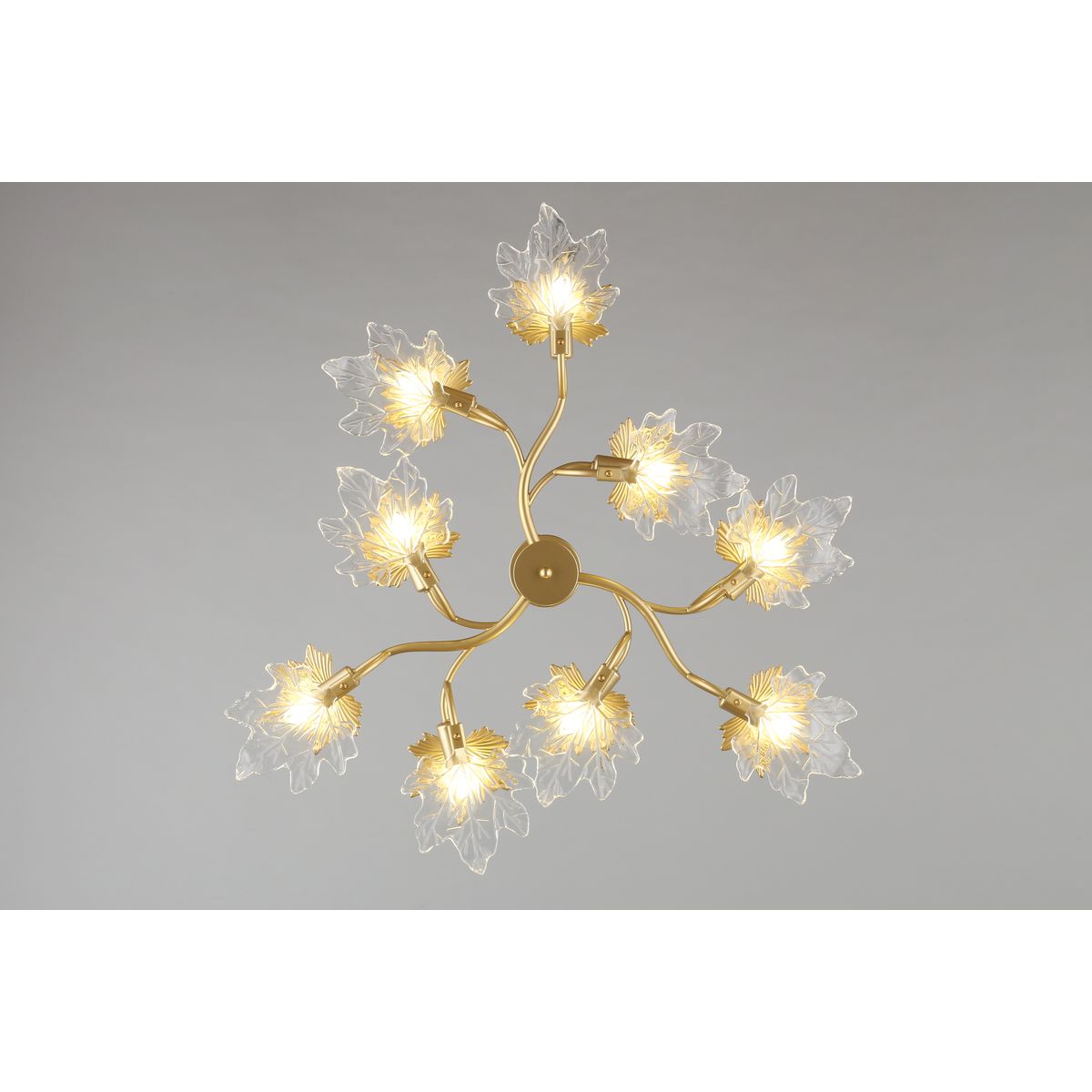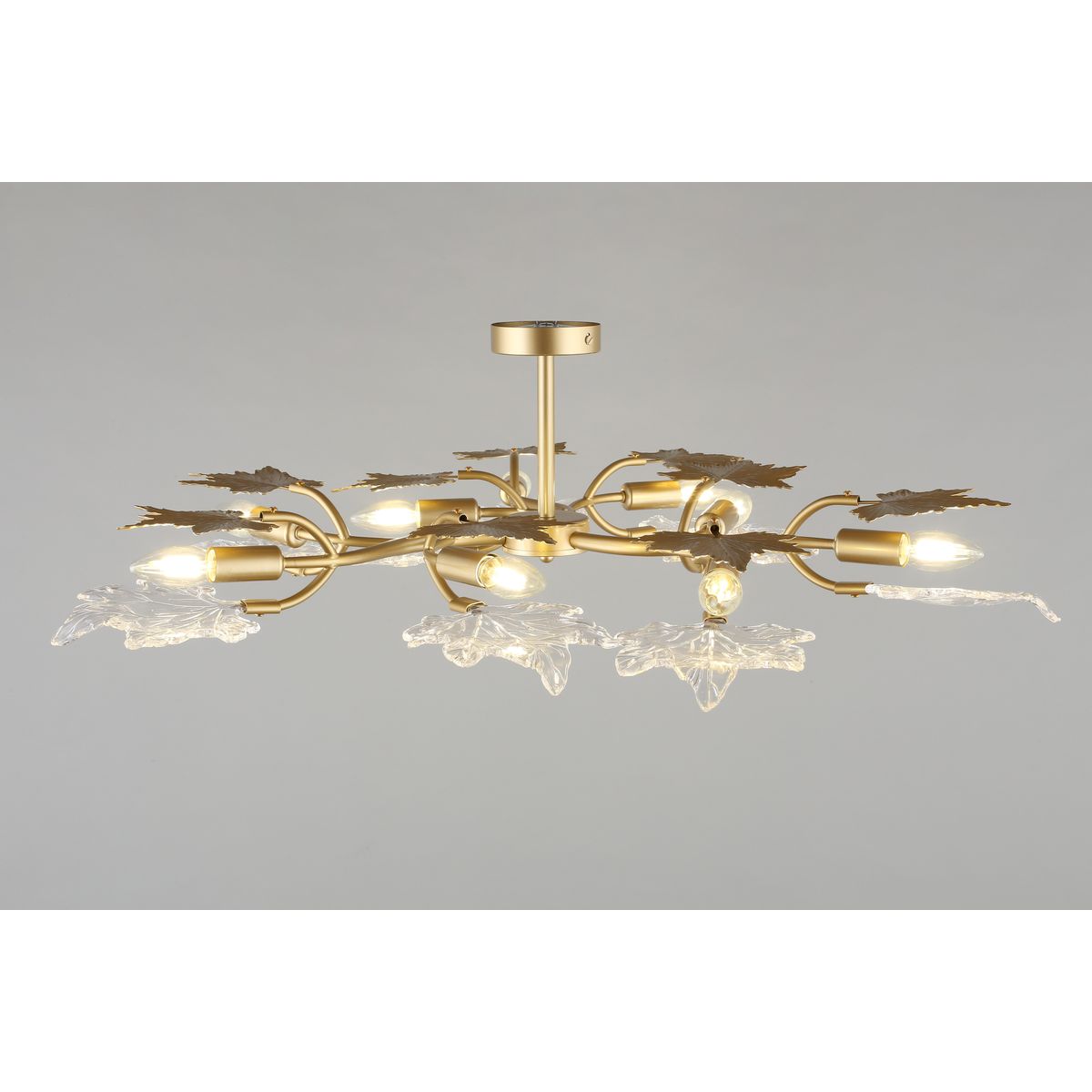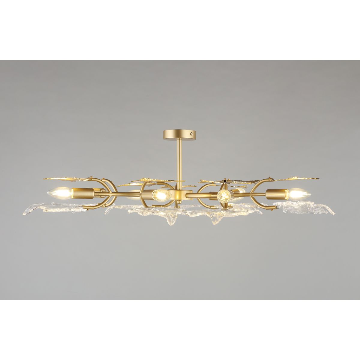 Производитель светильника рекомендует для устройства 9 ламп накаливания с цоколем E14 и мощностью 60 W, что позволит осветить помещение площадью 27 кв.м. Габариты изделия: высота – 250 мм, диаметр – 920 мм.