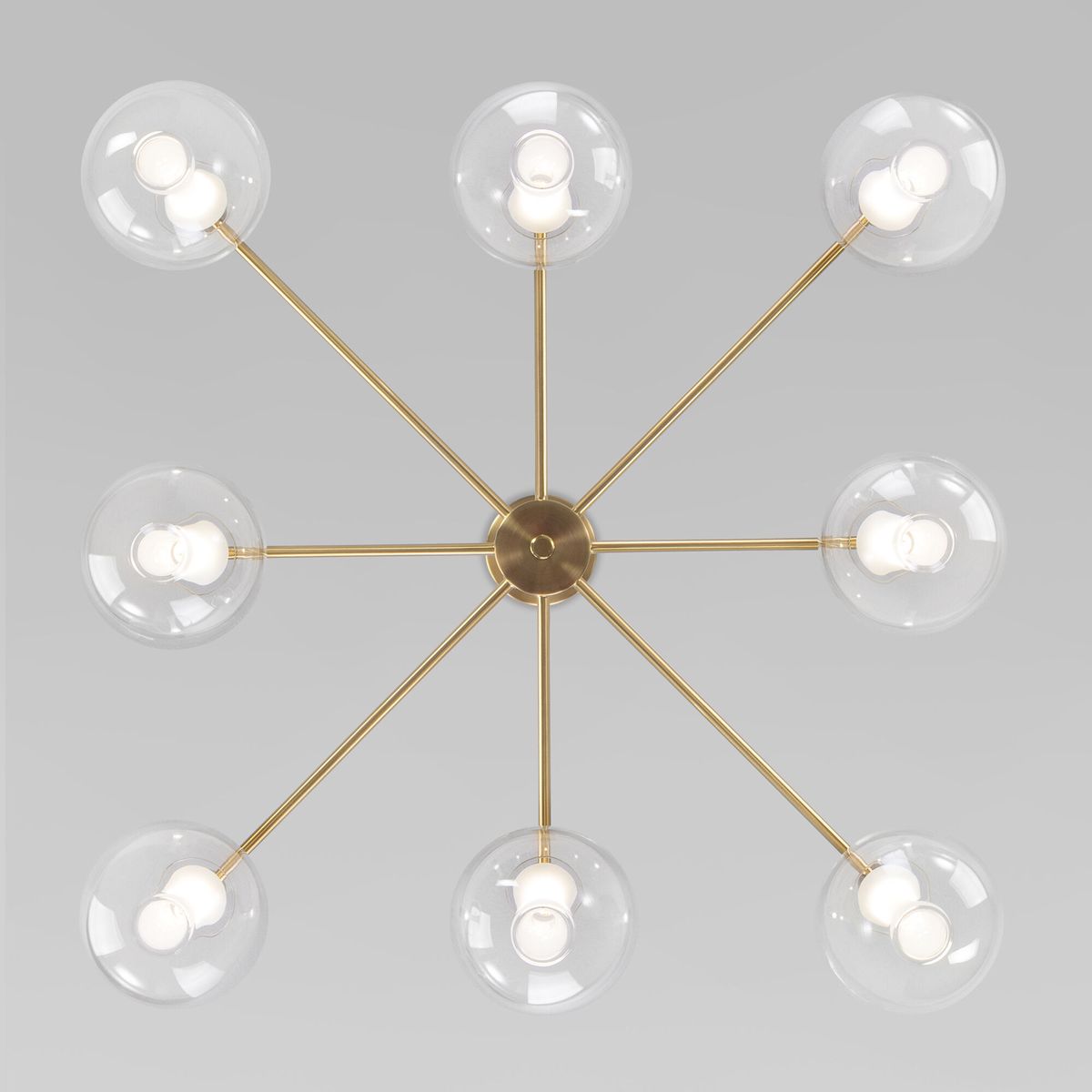 Потолочная люстра Eurosvet Magma 60175/8 латунь от Китайского бренда из коллекции Magma будет удачно смотреться в гостиной в стиле Арт-деко. Светильник выполнен из стекла с плафонами в форме прозрачного цвета.