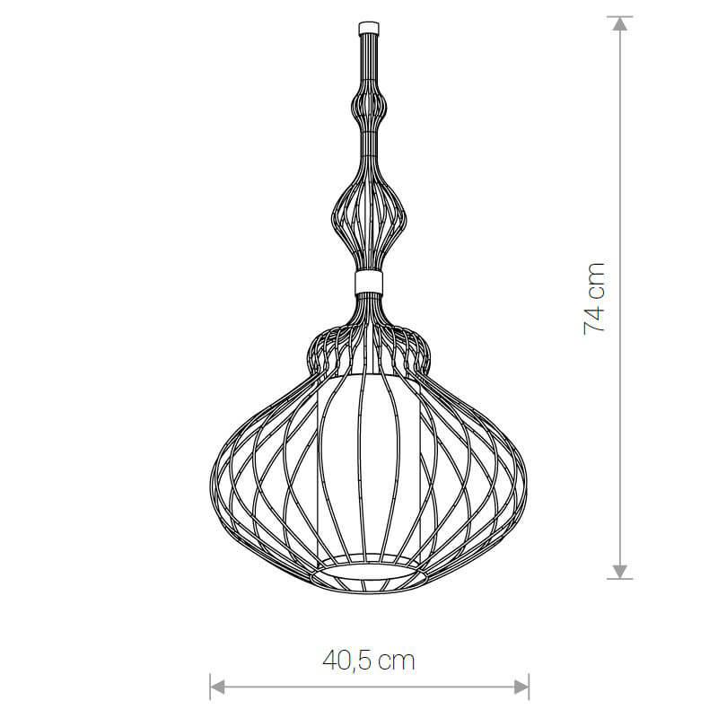 Производитель светильника рекомендует для устройства 1 с цоколем и мощностью W, что позволит осветить помещение площадью кв.м. Габариты изделия: высота – 740 мм, диаметр – 405 мм.