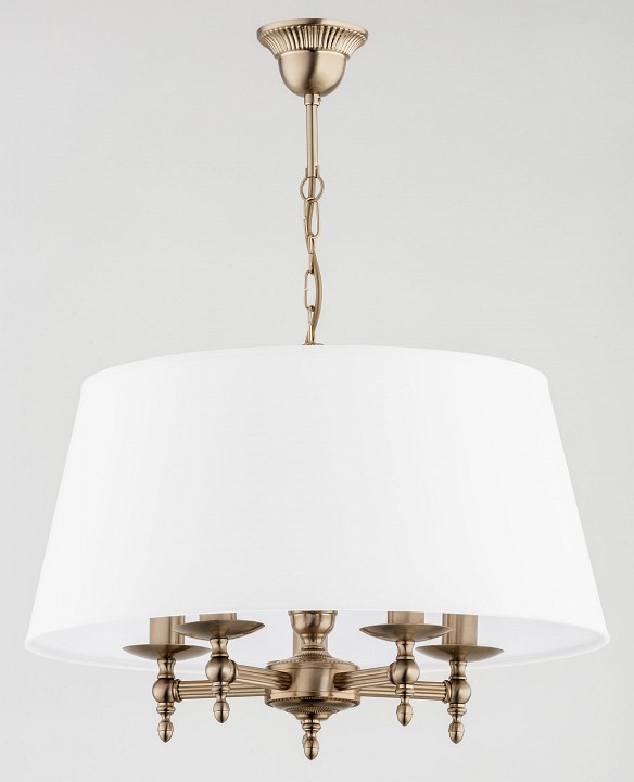Производитель светильника рекомендует для устройства 5 ламп накаливания с цоколем E14 и мощностью 40 W, что позволит осветить помещение площадью 11.1 кв.м. Габариты изделия: высота – 650 мм, диаметр – 500 мм.