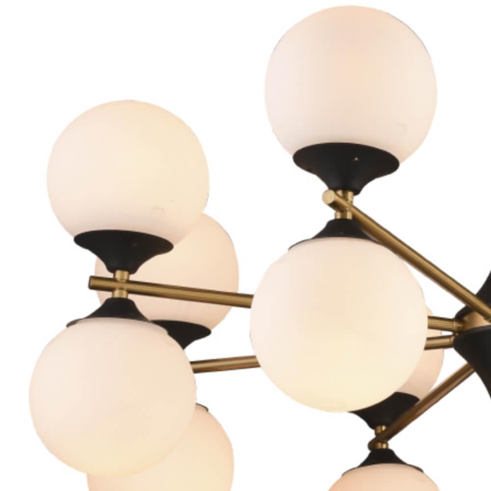 Производитель светильника рекомендует для устройства 16 ламп накаливания с цоколем E27 и мощностью 60 W, что позволит осветить помещение площадью 48 кв.м. Габариты изделия: высота – 530 мм, диаметр – 810 мм.