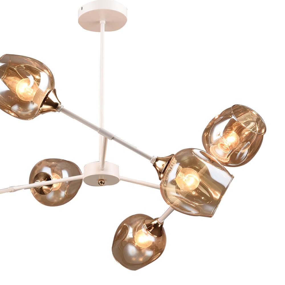 Потолочная люстра Wedo Light Sinio 66386.01.10.06 от Российского бренда Wedo Light из коллекции Sinio будет удачно смотреться в гостиной в стиле модерн. Светильник выполнен из стекла с плафонами в форме бокала янтарного цвета.