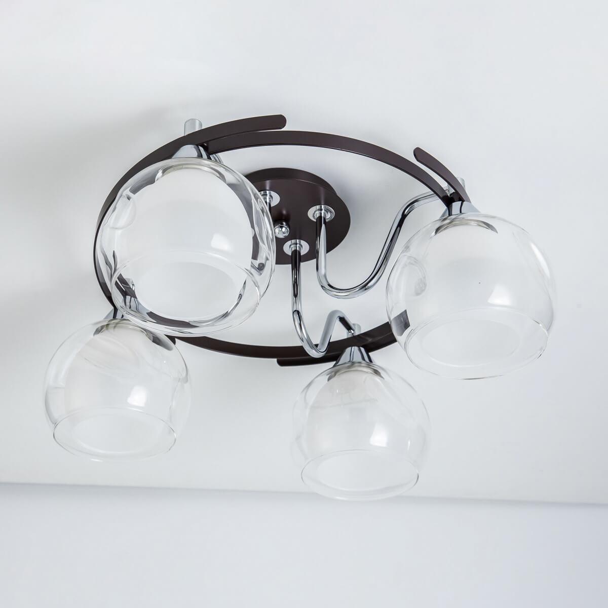 Производитель светильника рекомендует для устройства 4 лампы накаливания с цоколем E27 и мощностью 75 W, что позволит осветить помещение площадью 16,7 кв.м. Габариты изделия: высота – 200 мм, диаметр – 470 мм.
