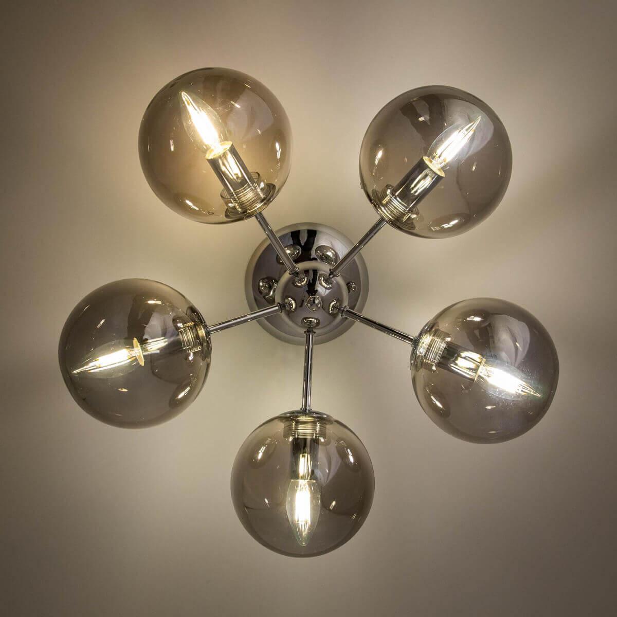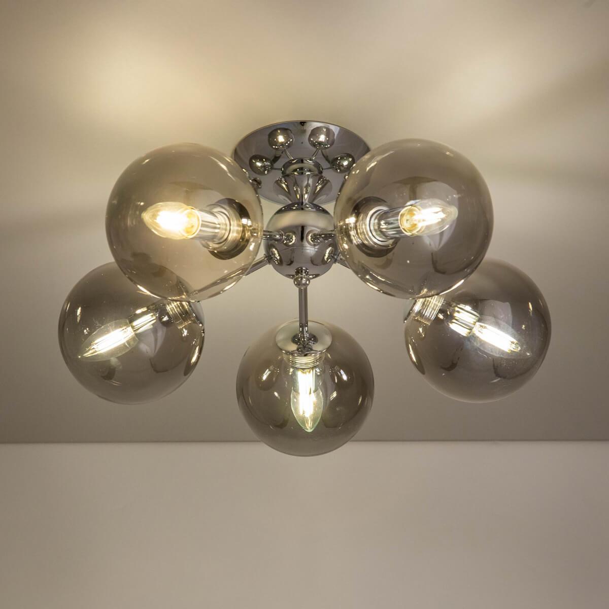 Потолочная люстра Citilux Томми CL102150 от Китайского бренда Citilux из коллекции Томми будет удачно смотреться в гостиной в современном стиле. Светильник выполнен из стекла с плафонами в форме шара дымчатого цвета.