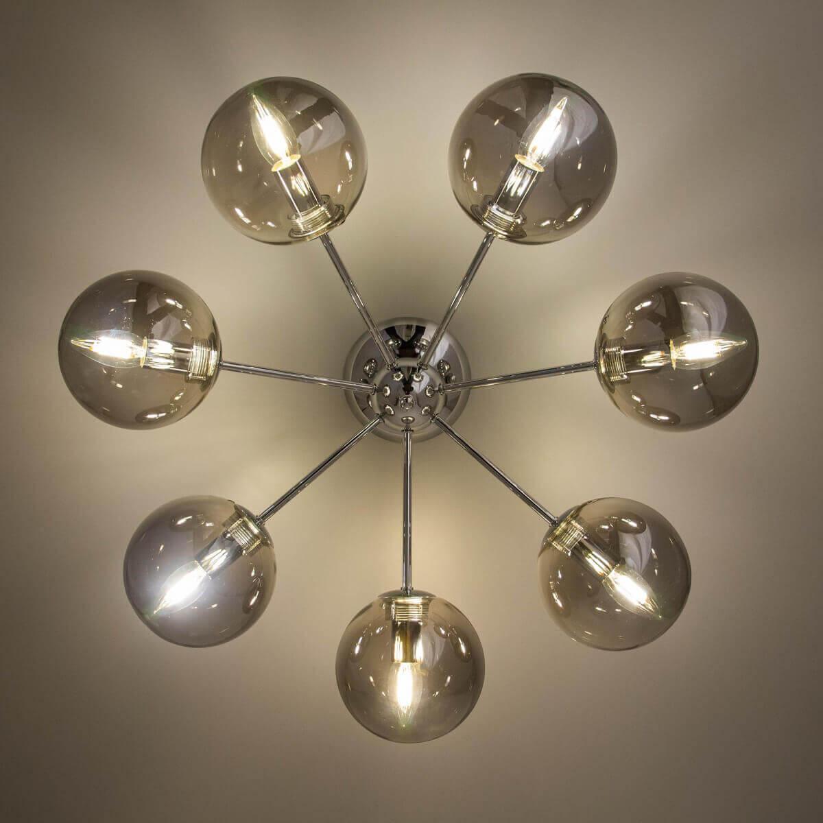Потолочная люстра Citilux Томми CL102170 от Китайского бренда Citilux из коллекции Томми будет удачно смотреться в гостиной в стиле модерн. Светильник выполнен из стекла с плафонами в форме шара дымчатого цвета.
