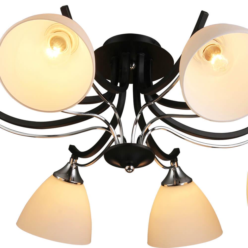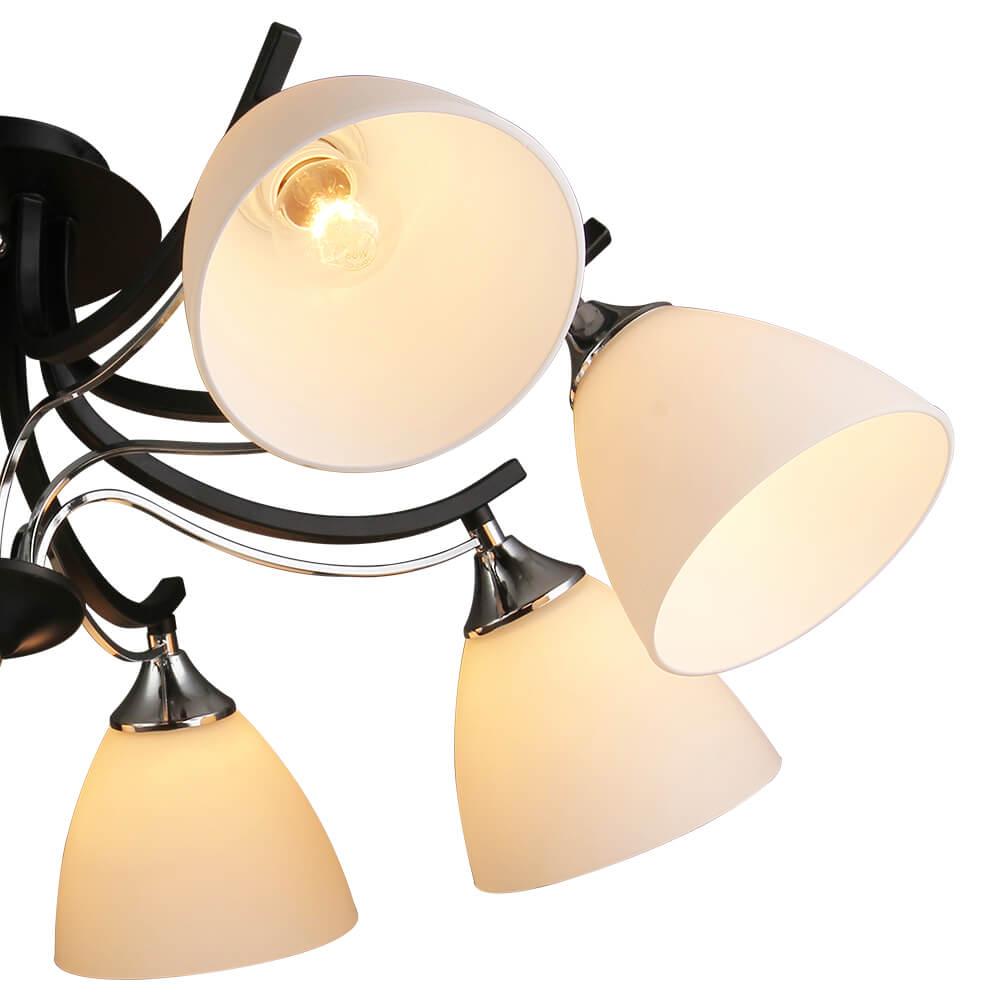 Производитель светильника рекомендует для устройства 8 ламп накаливания с цоколем E27 и мощностью 60 W, что позволит осветить помещение площадью 24 кв.м. Габариты изделия: высота – 260 мм, диаметр – 760 мм.