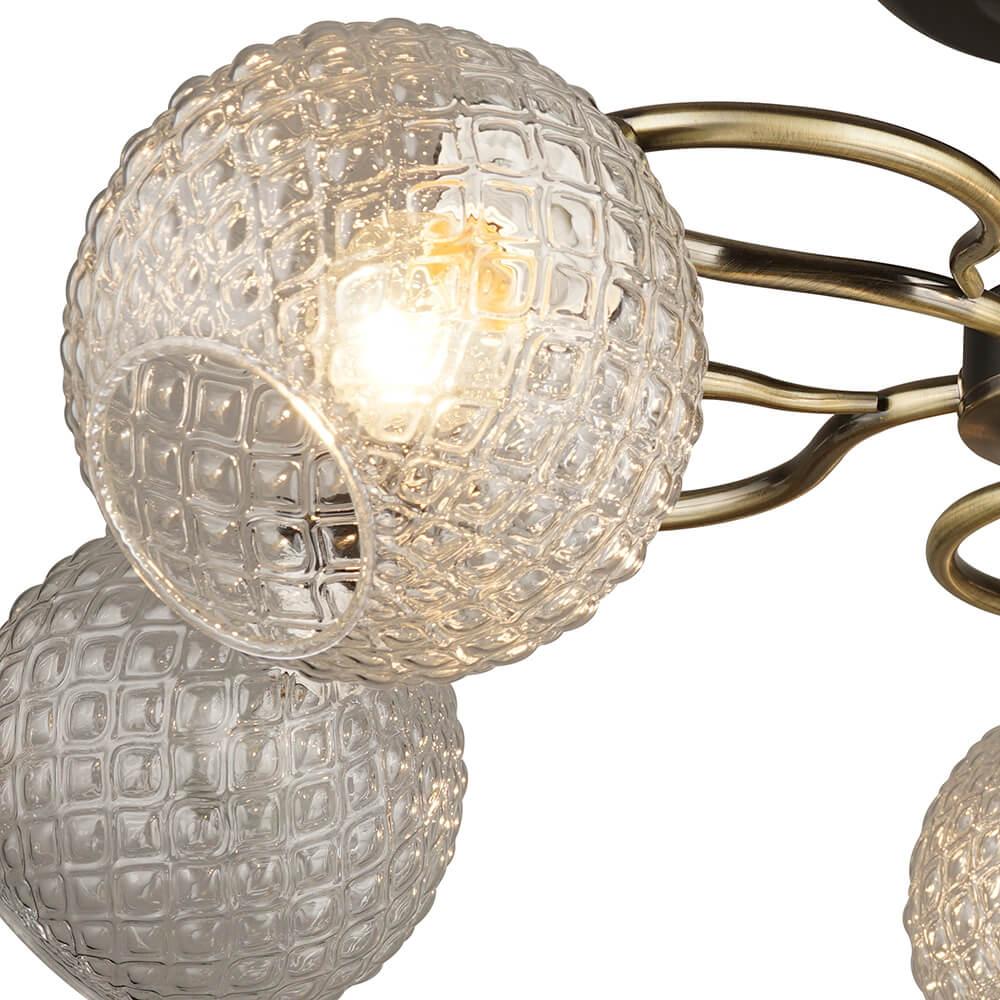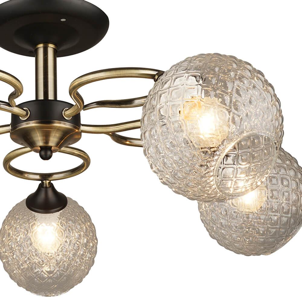 Производитель светильника рекомендует для устройства 5 ламп накаливания с цоколем E27 и мощностью 60 W, что позволит осветить помещение площадью 15 кв.м. Габариты изделия: высота – 250 мм, диаметр – 640 мм.