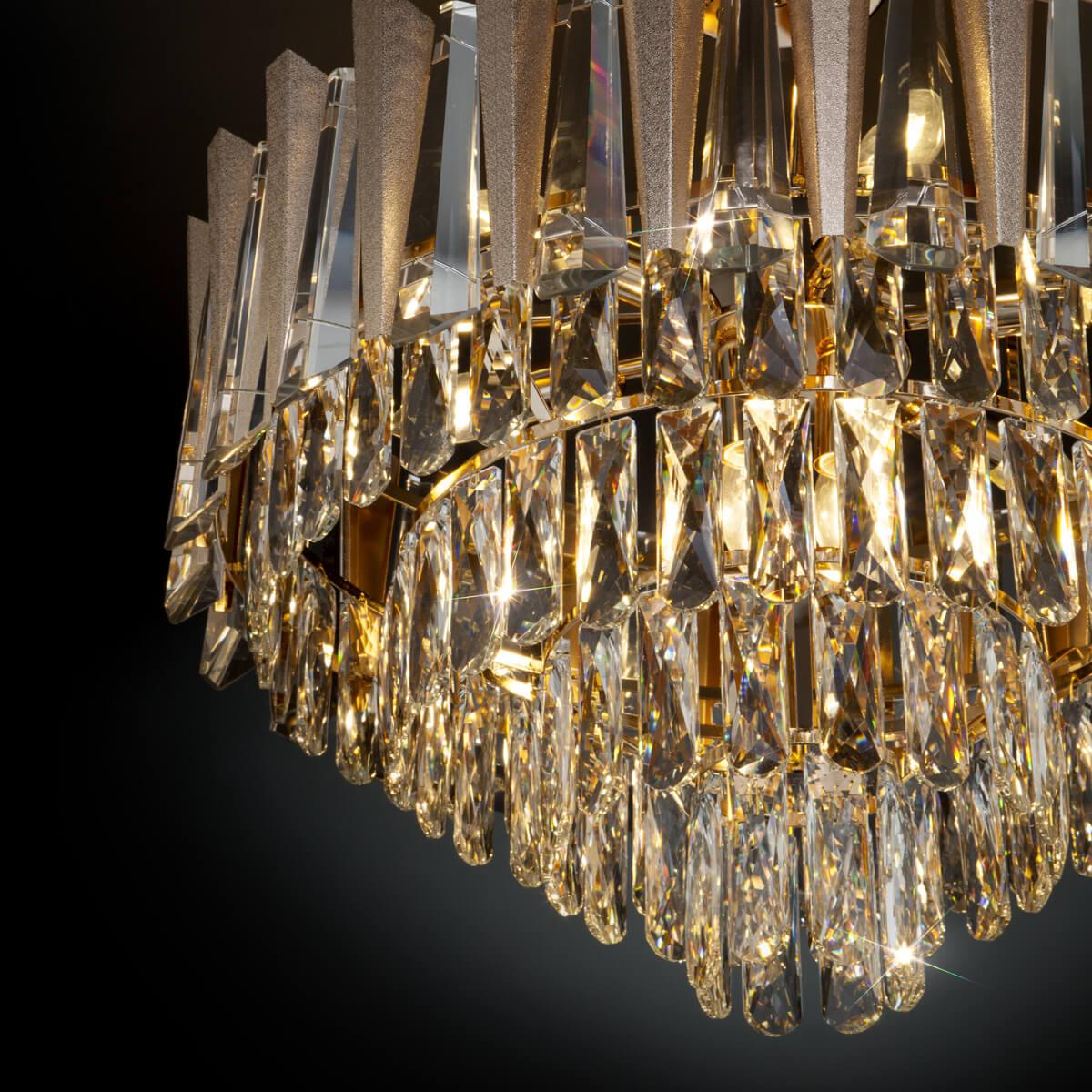 Потолочная люстра Bogates Coda 328/9 Strotskis от бренда Bogates из коллекции Coda будет удачно смотреться в гостиной в стиле Арт-деко. Светильник выполнен из хрусталя с плафонами в форме цилиндра прозрачного цвета.