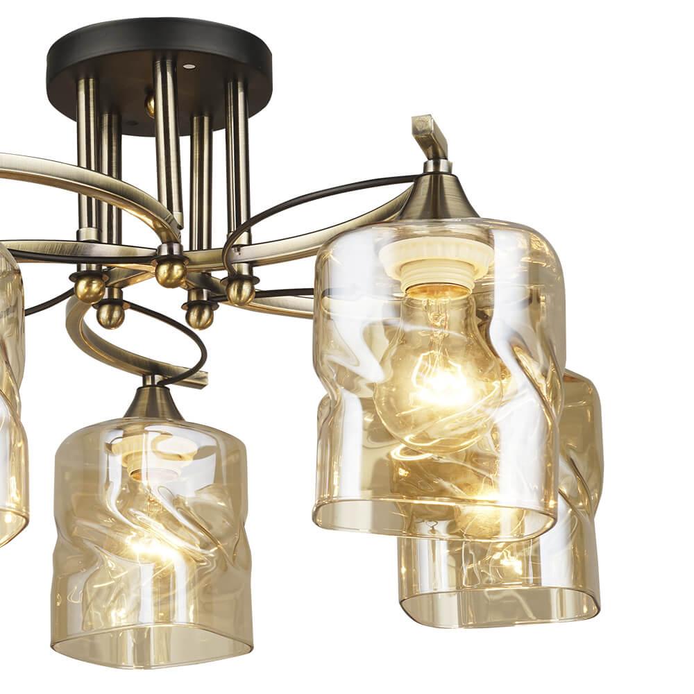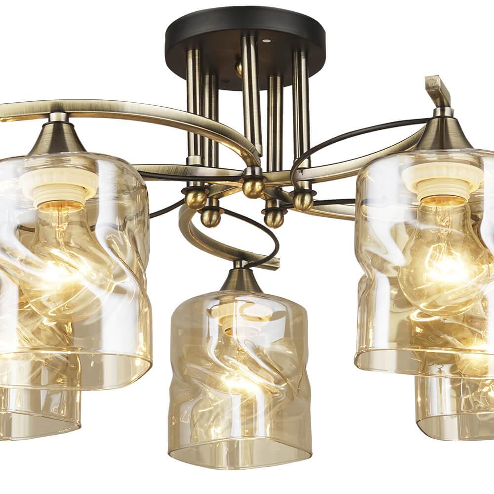 Производитель светильника рекомендует для устройства 5 ламп накаливания с цоколем E27 и мощностью 60 W, что позволит осветить помещение площадью 15 кв.м. Габариты изделия: высота – 280 мм, диаметр – 520 мм.