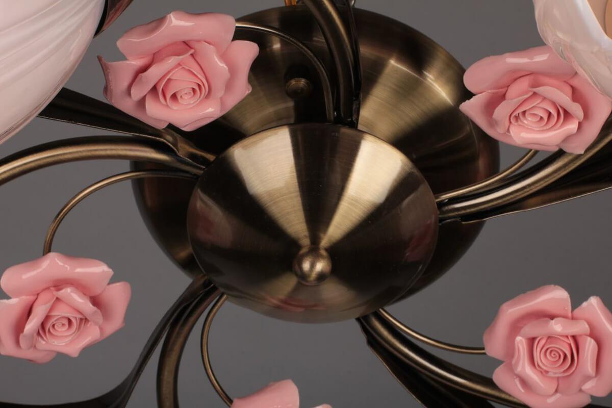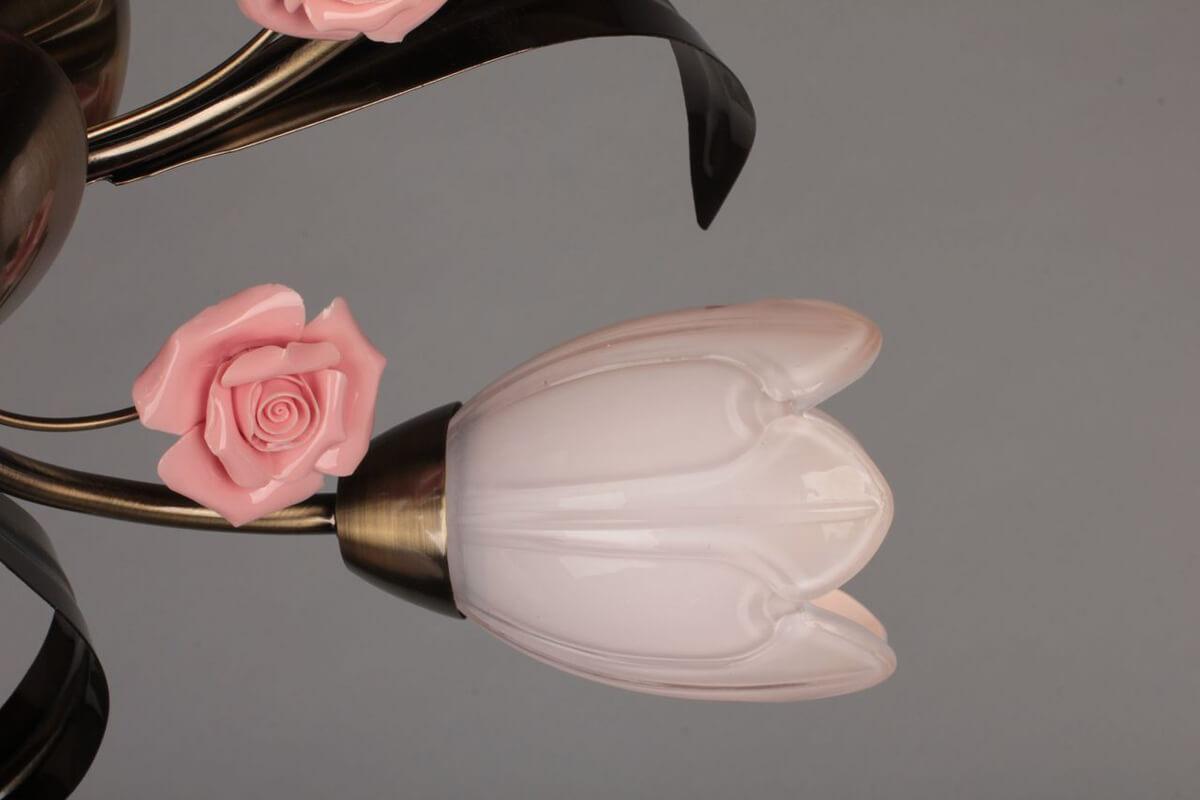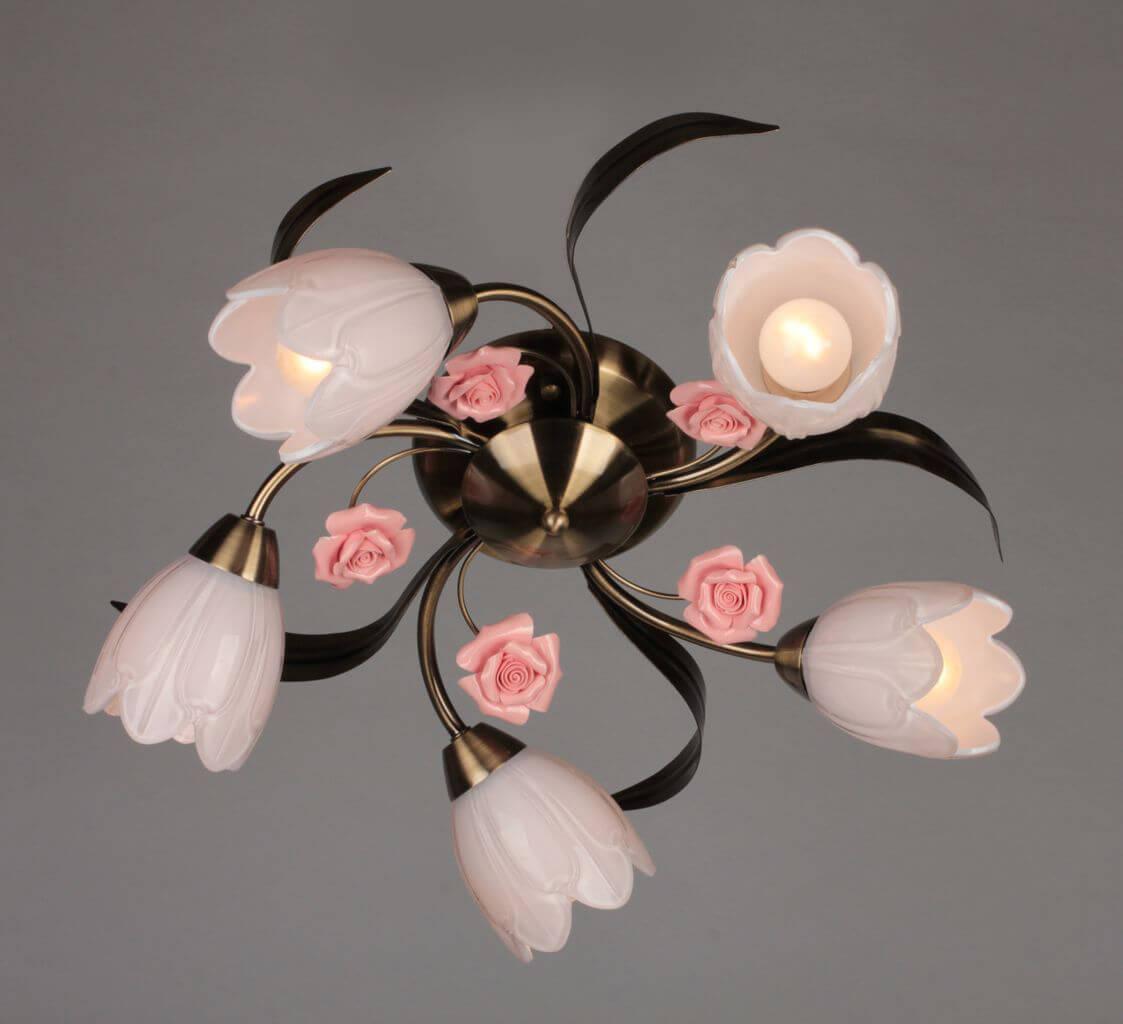 Потолочная люстра Omnilux OML-38507-05 от Китайского бренда Omnilux из коллекции 385 будет удачно смотреться в гостиной в стиле модерн. Светильник выполнен из стекла с плафонами в форме Флористика белого цвета.
