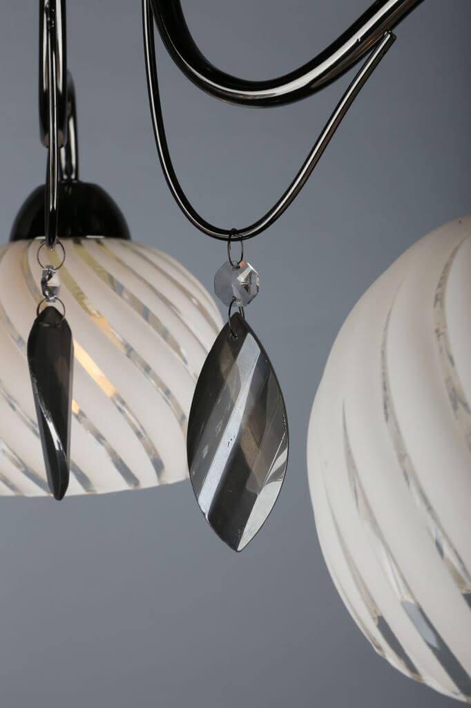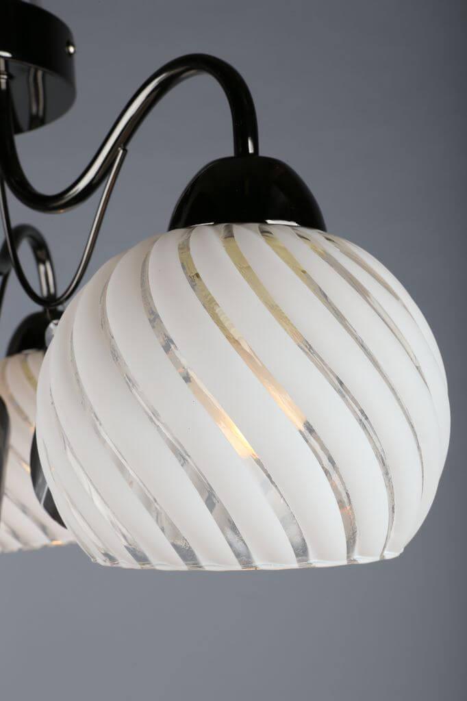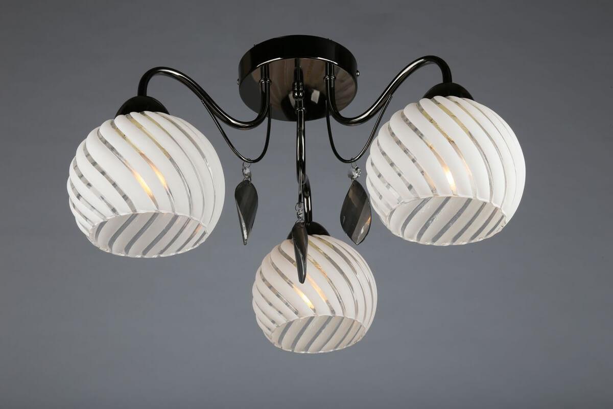 Производитель светильника рекомендует для устройства 3 лампы накаливания с цоколем E27 и мощностью 60 W, что позволит осветить помещение площадью 10,0 кв.м. Габариты изделия: высота – 250 мм, диаметр – 500 мм.