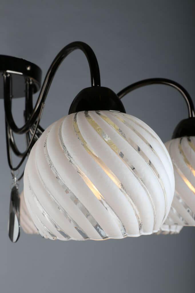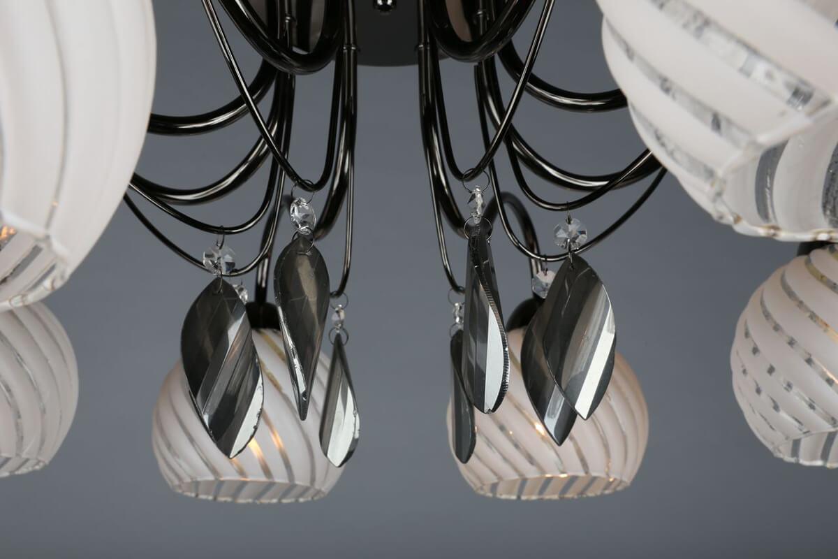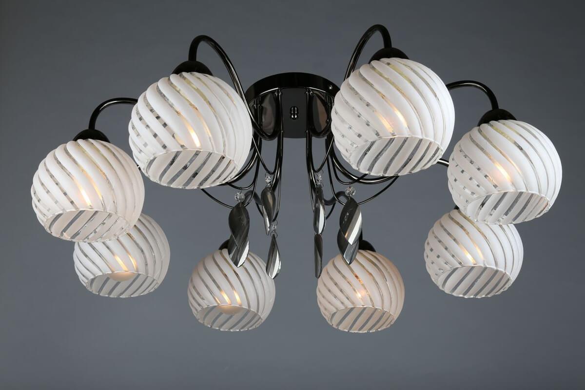 Производитель светильника рекомендует для устройства 8 ламп накаливания с цоколем E27 и мощностью 60 W, что позволит осветить помещение площадью 26,7 кв.м. Габариты изделия: высота – 300 мм, диаметр – 800 мм.
