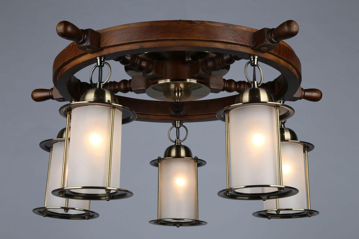 Производитель светильника рекомендует для устройства 5 ламп накаливания с цоколем E27 и мощностью 60 W, что позволит осветить помещение площадью 17 кв.м. Габариты изделия: высота – 300 мм, диаметр – 600 мм.