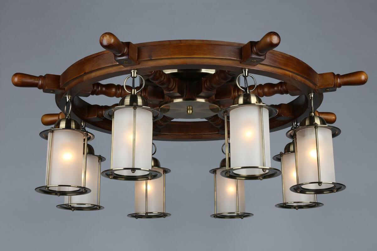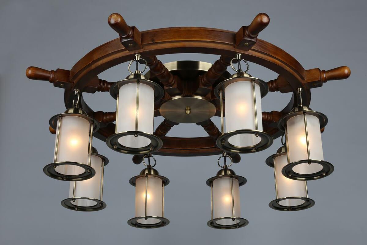 Производитель светильника рекомендует для устройства 8 ламп накаливания с цоколем E27 и мощностью 60 W, что позволит осветить помещение площадью 27 кв.м. Габариты изделия: высота – 300 мм, диаметр – 850 мм.