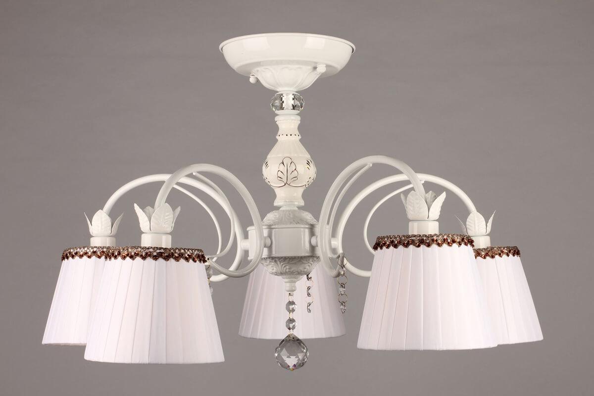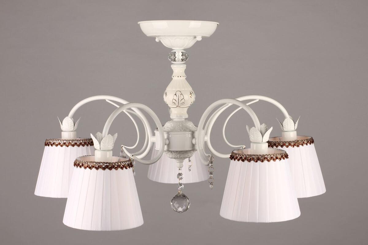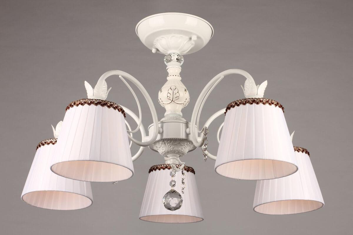 Потолочная люстра Omnilux OML-46407-05 от Китайского бренда Omnilux из коллекции OML-464 будет удачно смотреться в спальни в классиком стиле. Светильник выполнен из ткани с плафонами в форме конуса белого цвета.