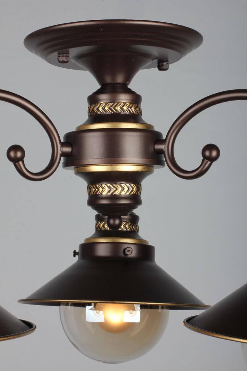 Производитель светильника рекомендует для устройства 3 лампы накаливания с цоколем E27 и мощностью 60 W, что позволит осветить помещение площадью 10 кв.м. Габариты изделия: высота – 350 мм, диаметр – 610 мм.