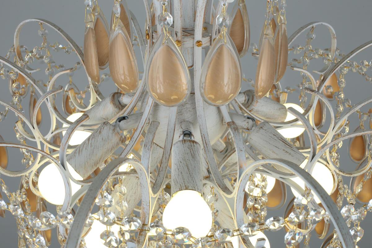 Потолочная люстра Omnilux Agrigento OML-74507-10 от Китайского бренда Omnilux из коллекции Agrigento Gold будет удачно смотреться в гостиной в классиком стиле. Светильник выполнен из с плафонами в форме .