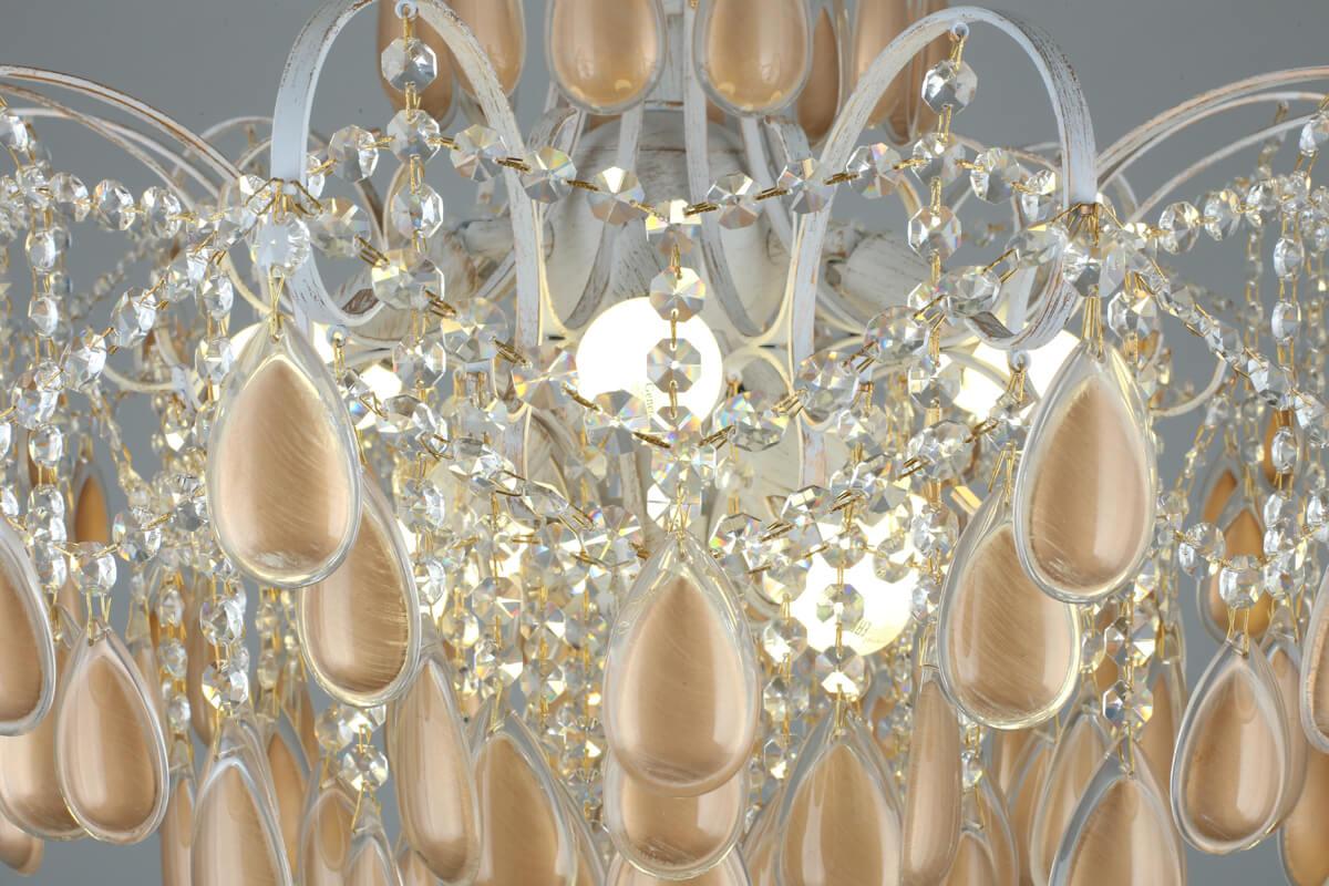 Производитель светильника рекомендует для устройства 10 ламп накаливания с цоколем E14 и мощностью 40 W, что позволит осветить помещение площадью 23 кв.м. Габариты изделия: высота – 600 мм, диаметр – 700 мм.
