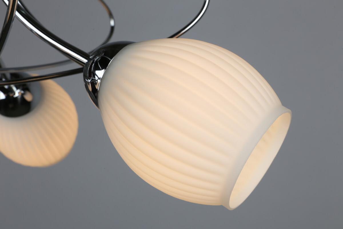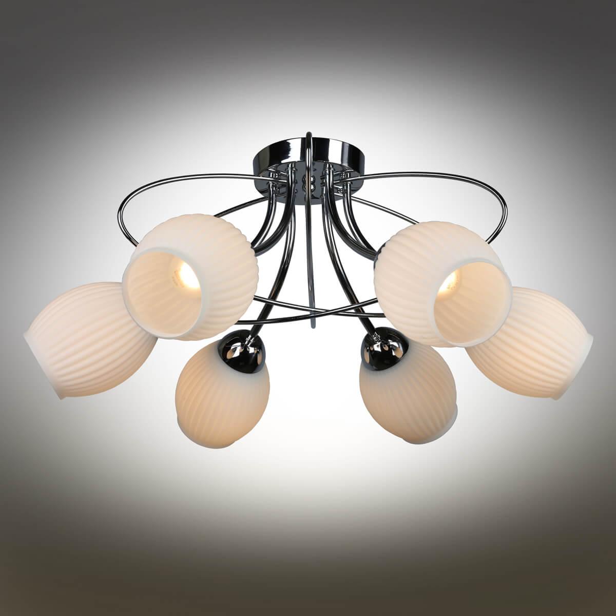 Потолочная люстра Omnilux Calevace OML-54307-06 от Китайского бренда Omnilux из коллекции Calevace будет удачно смотреться в спальни в стиле модерн. Светильник выполнен из стекла с плафонами в форме овала белого цвета.