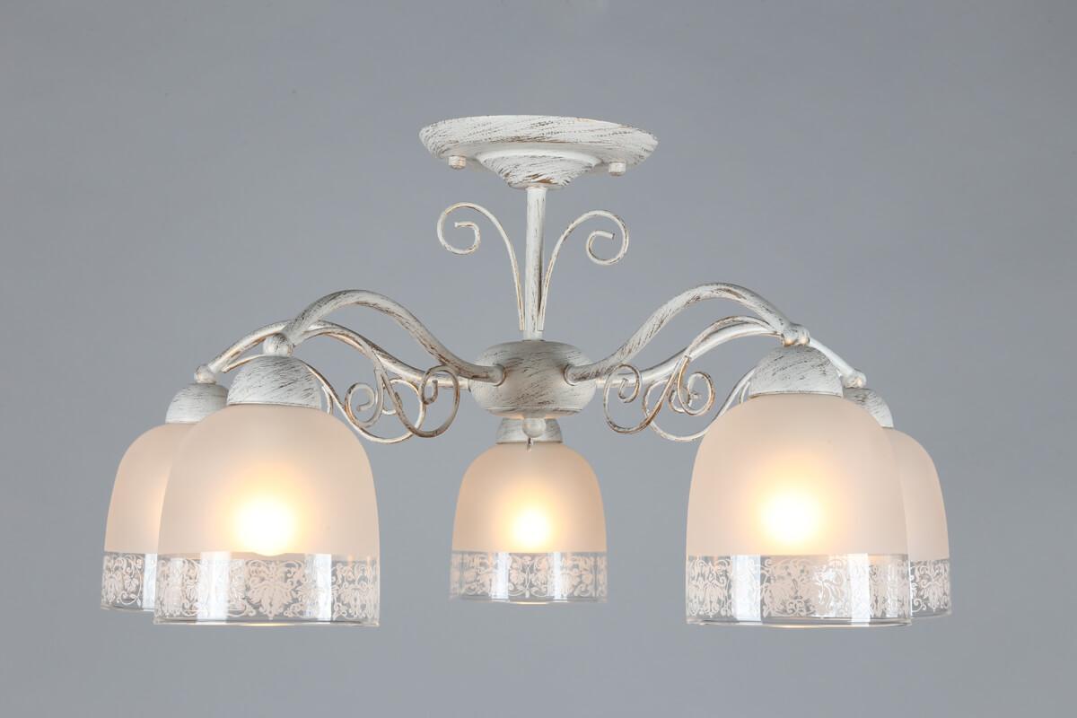 Потолочная люстра Omnilux Ferraro OML-54907-05 от Китайского бренда Omnilux из коллекции Ferraro будет удачно смотреться в спальни в стиле модерн. Светильник выполнен из стекла с плафонами в форме овала белого цвета.