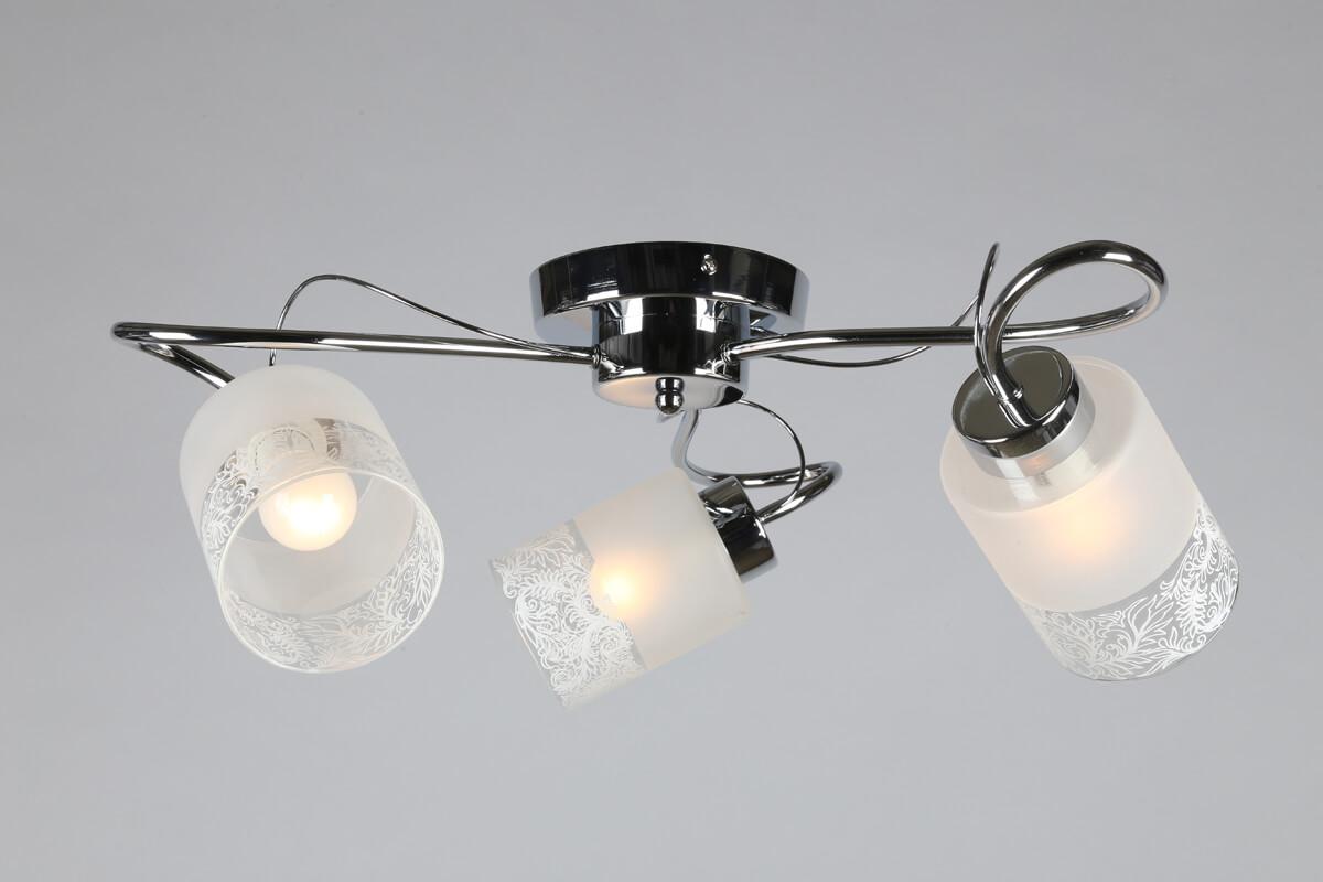 Производитель светильника рекомендует для устройства 3 лампы накаливания с цоколем E14 и мощностью 40 W, что позволит осветить помещение площадью 6,7 кв.м. Габариты изделия: высота – 170 мм, диаметр – 560 мм.