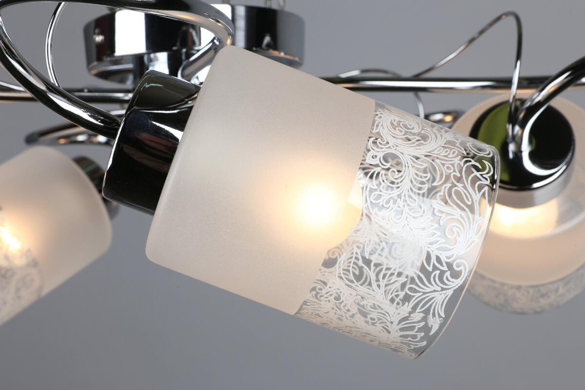 Производитель светильника рекомендует для устройства 5 ламп накаливания с цоколем E14 и мощностью 40 W, что позволит осветить помещение площадью 12 кв.м. Габариты изделия: высота – 170 мм, диаметр – 560 мм.