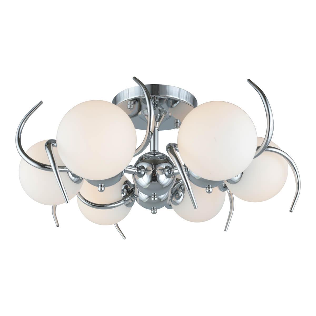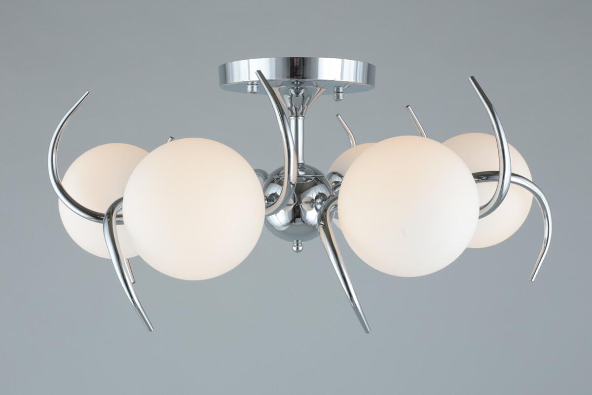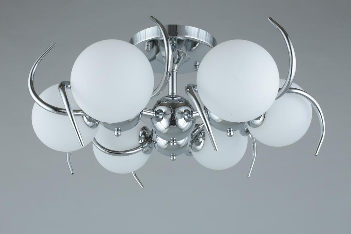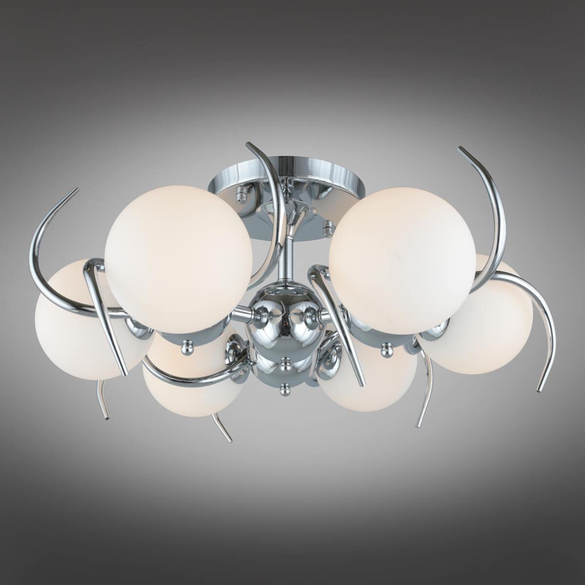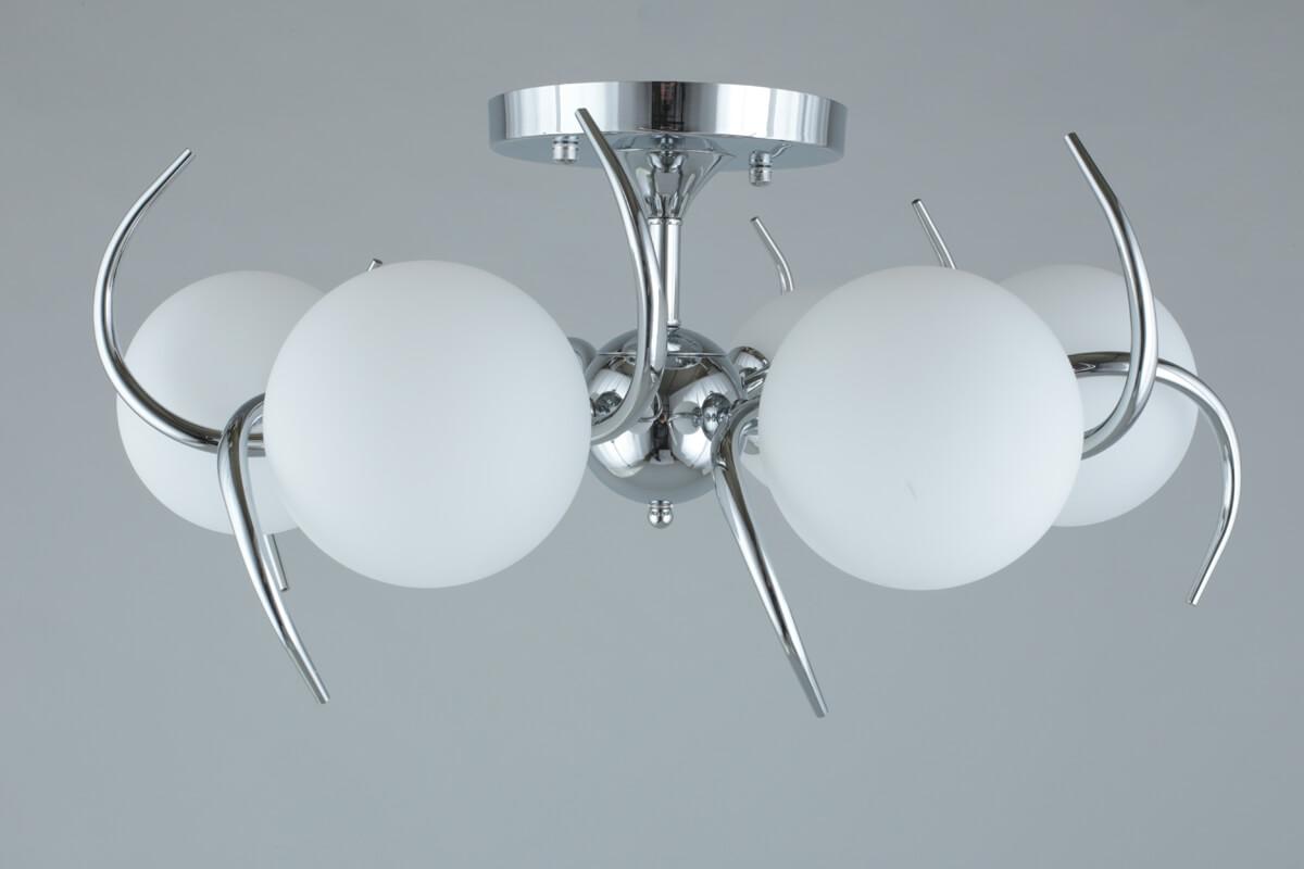 Потолочная люстра Omnilux Dalmine OML-64107-06 от Китайского бренда Omnilux из коллекции Dalmine будет удачно смотреться в кухне в стиле модерн. Светильник выполнен из стекла с плафонами в форме круга белого цвета.