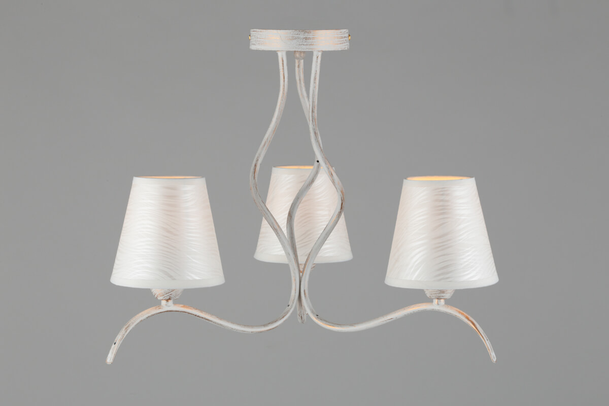 Потолочная люстра Omnilux Ugento OML-28407-03 от Китайского бренда Omnilux из коллекции Ugento будет удачно смотреться в спальни в стиле модерн. Светильник выполнен из ткани с плафонами в форме конуса белого цвета.