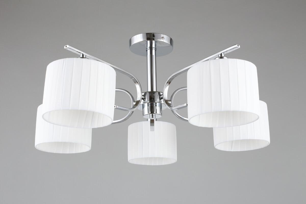 Потолочная люстра Omnilux Neviano OML-34207-05 от Китайского бренда Omnilux из коллекции Neviano будет удачно смотреться в стиле модерн. Светильник выполнен из ткани с плафонами в форме цилиндра белого цвета.