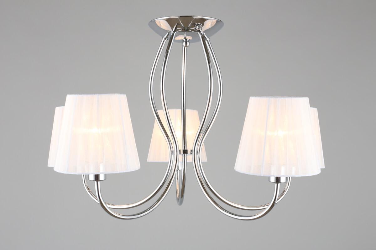 Потолочная люстра Omnilux Pontinia OML-65207-05 от Китайского бренда Omnilux из коллекции Pontinia будет удачно смотреться в спальни в стиле модерн. Светильник выполнен из ткани с плафонами в форме конуса белого цвета.