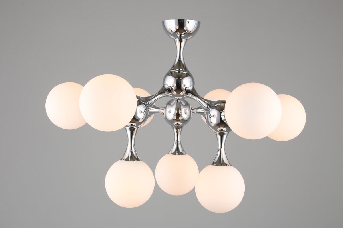 Потолочная люстра Omnilux Ronta OML-93107-09 от Китайского бренда Omnilux из коллекции Ronta будет удачно смотреться в гостиной в лофт стиле. Светильник выполнен из стекла с плафонами в форме круга белого цвета.