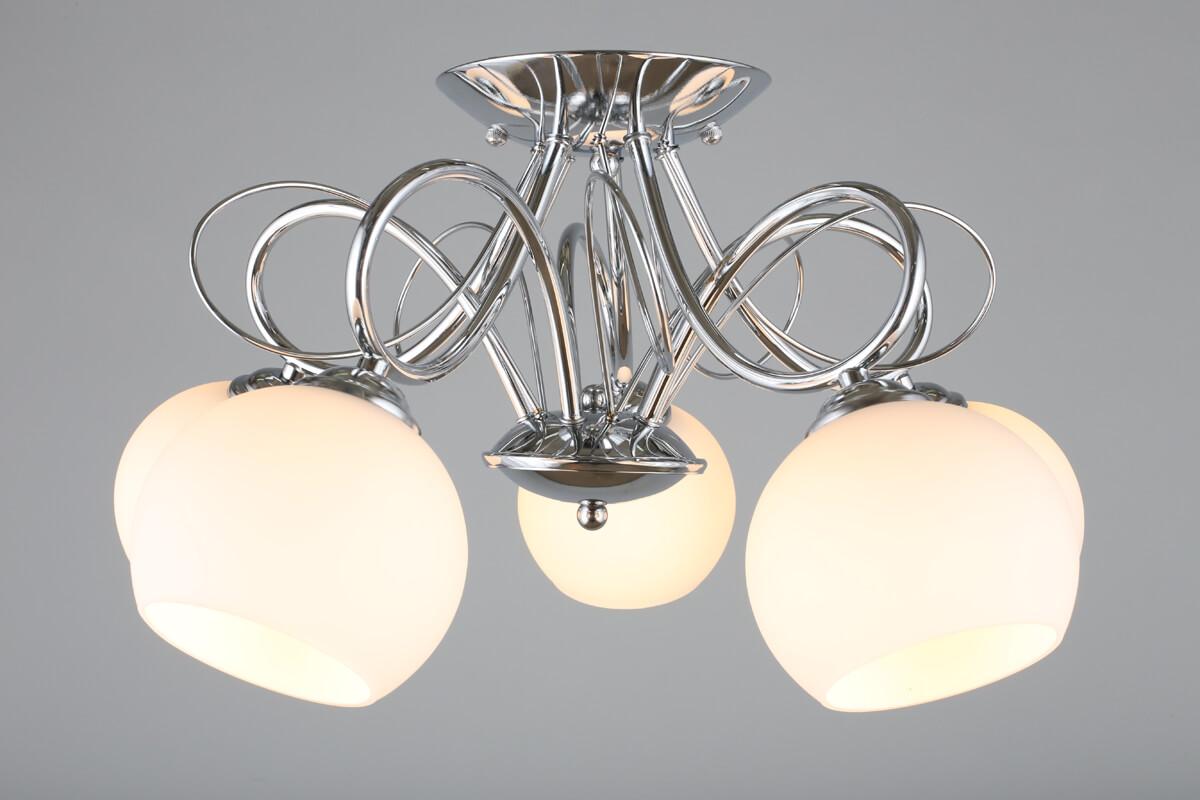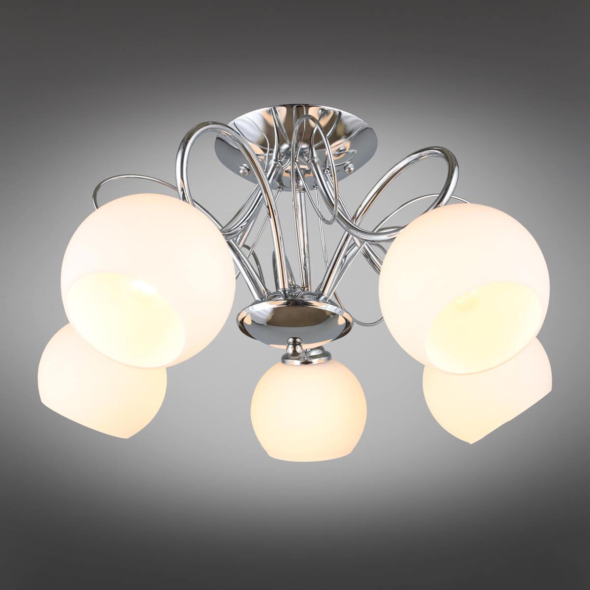 Потолочная люстра Omnilux Bellano OML-24707-05 от Китайского бренда Omnilux из коллекции Bellano будет удачно смотреться в спальни в стиле модерн. Светильник выполнен из стекла с плафонами в форме круга белого цвета.