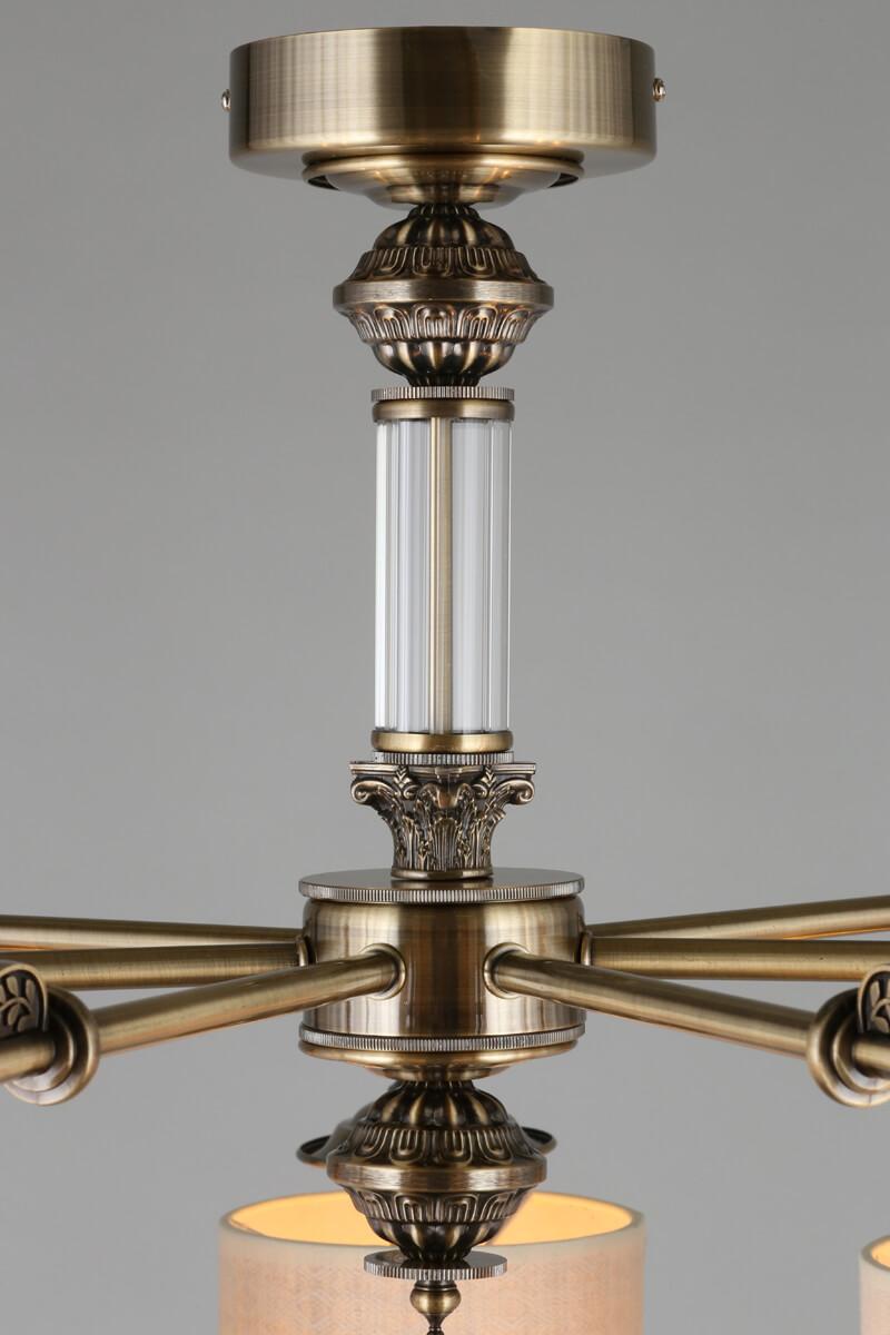 Производитель светильника рекомендует для устройства 7 ламп накаливания с цоколем E14 и мощностью 60 W, что позволит осветить помещение площадью 14 кв.м. Габариты изделия: высота – 500 мм, диаметр – 700 мм.