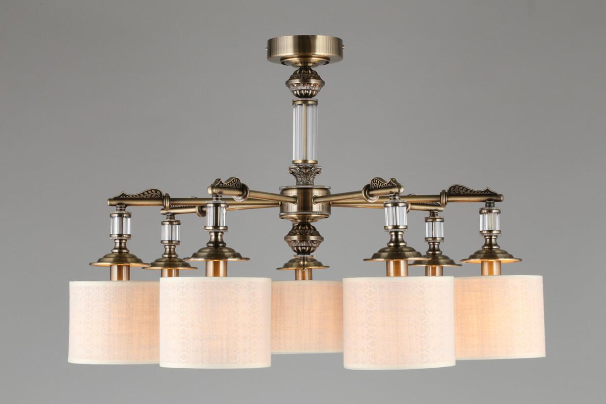 Потолочная люстра Omnilux Rovigo OML-64307-07 от Китайского бренда Omnilux из коллекции Rovigo будет удачно смотреться в гостиной в классиком стиле. Светильник выполнен из ткани с плафонами в форме цилиндра серого цвета.