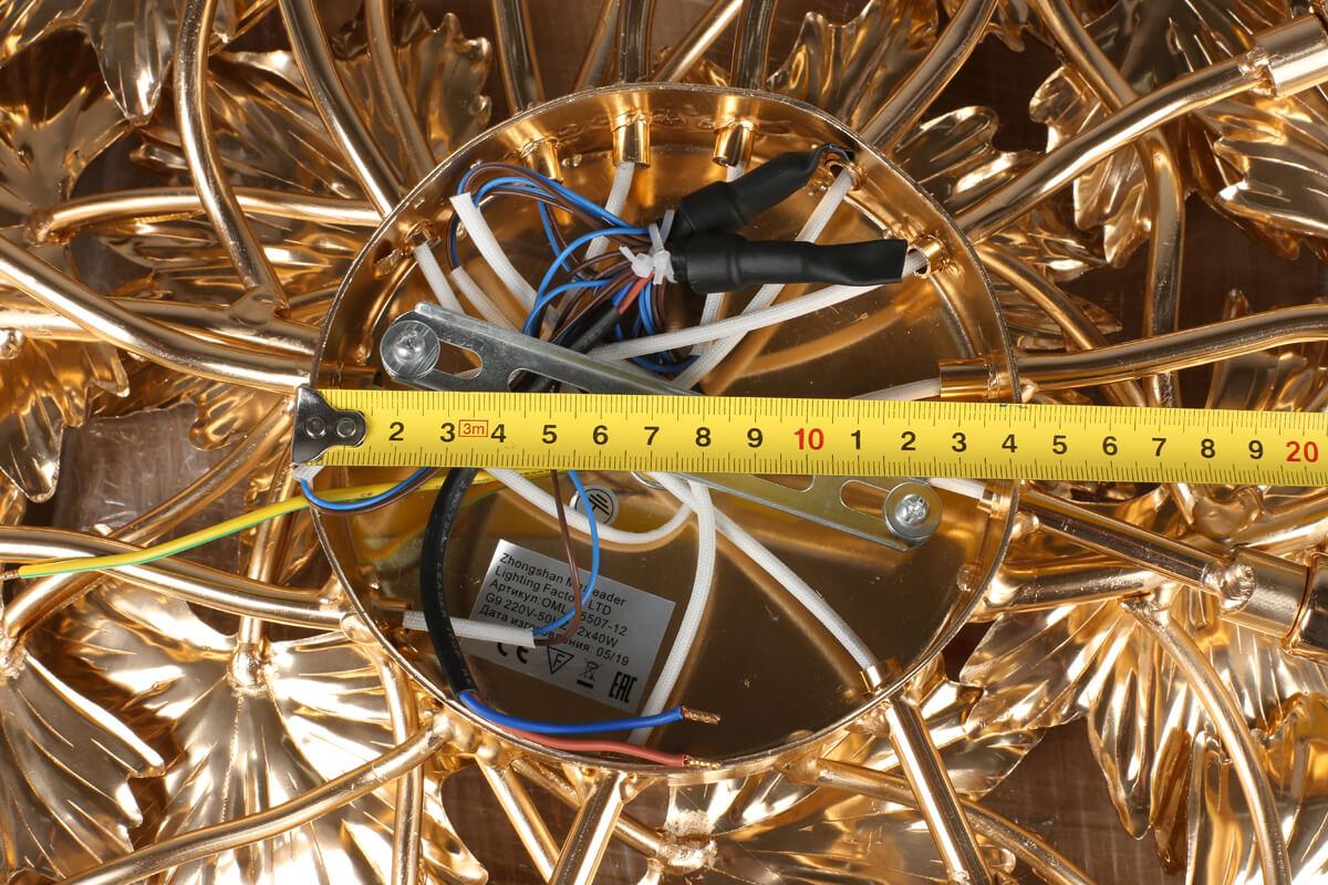Потолочная люстра Omnilux Bellona OML-85507-12 от Китайского бренда Omnilux из коллекции Bellona будет удачно смотреться в гостиной в классиком стиле. Светильник выполнен из металла с плафонами в форме Флористика залотого цвета.