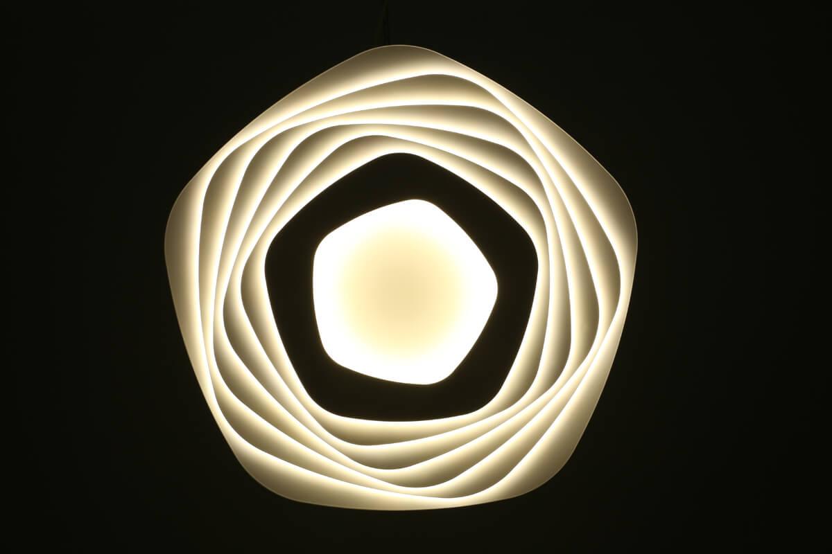 Производитель светильника рекомендует для устройства светодиодных ламп с цоколем LED и мощностью 380 W, что позволит осветить помещение площадью кв.м. Габариты изделия: высота – 80 мм, диаметр – 800 мм.