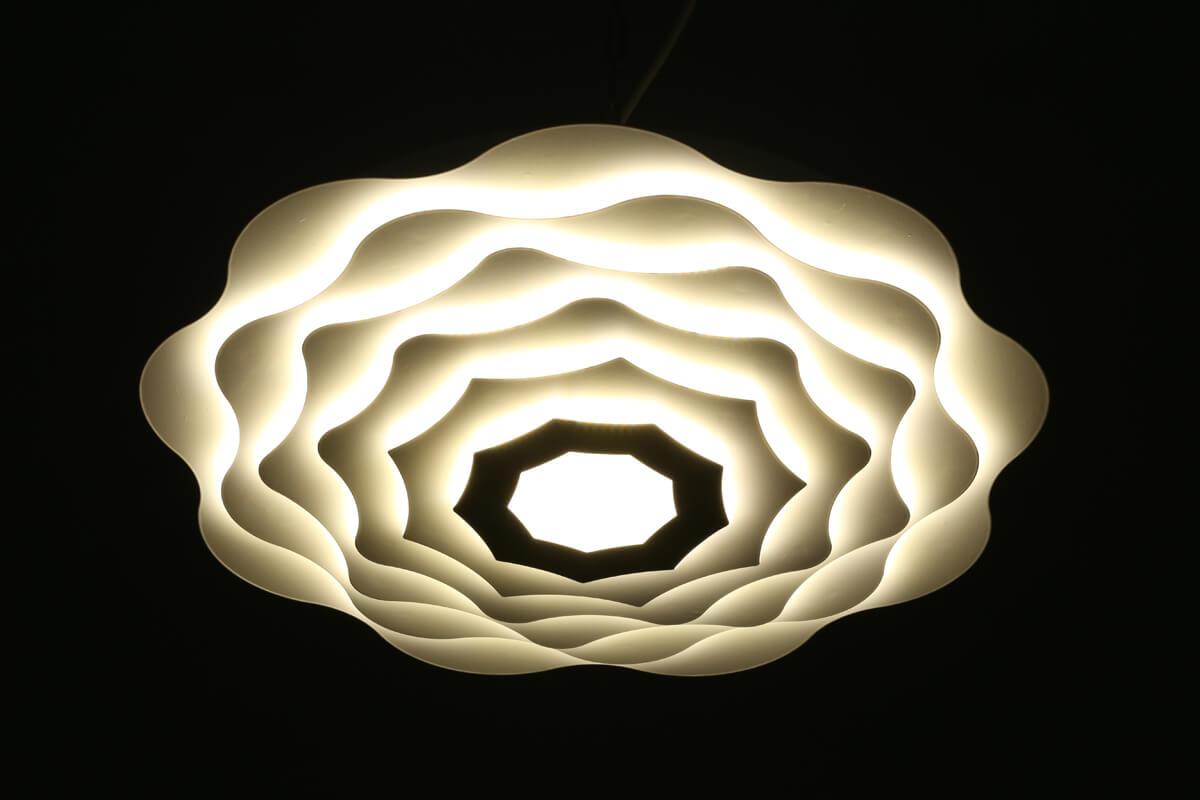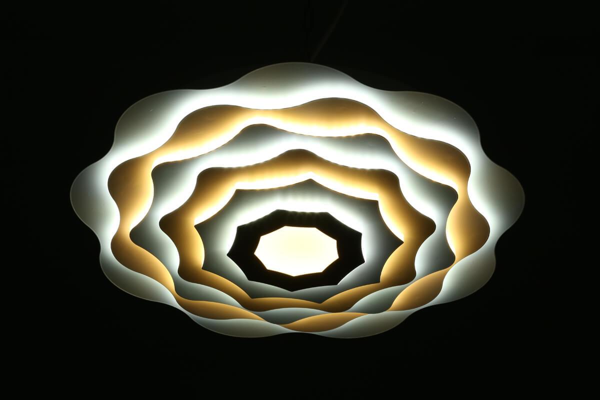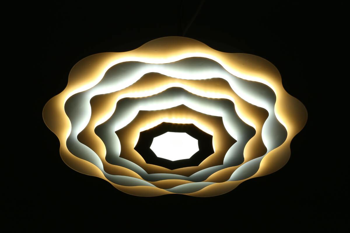 Производитель светильника рекомендует для устройства светодиодных ламп с цоколем LED и мощностью 188 W, что позволит осветить помещение площадью кв.м. Габариты изделия: высота – 80 мм, диаметр – 500 мм.