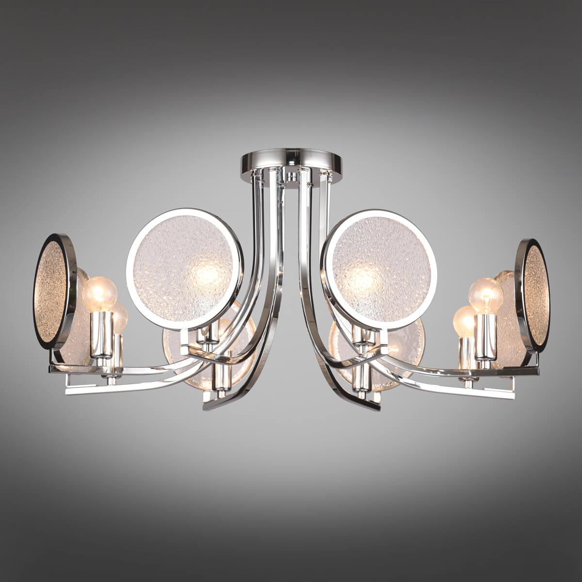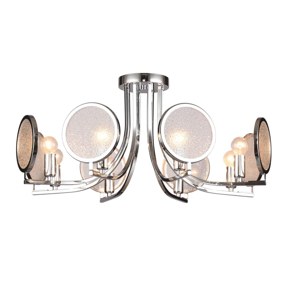 Потолочная люстра Omnilux Anzio OML-66107-08 от Китайского бренда Omnilux из коллекции Anzio будет удачно смотреться в гостиной в стиле модерн. Светильник выполнен из стекла с плафонами в форме круга прозрачного цвета.