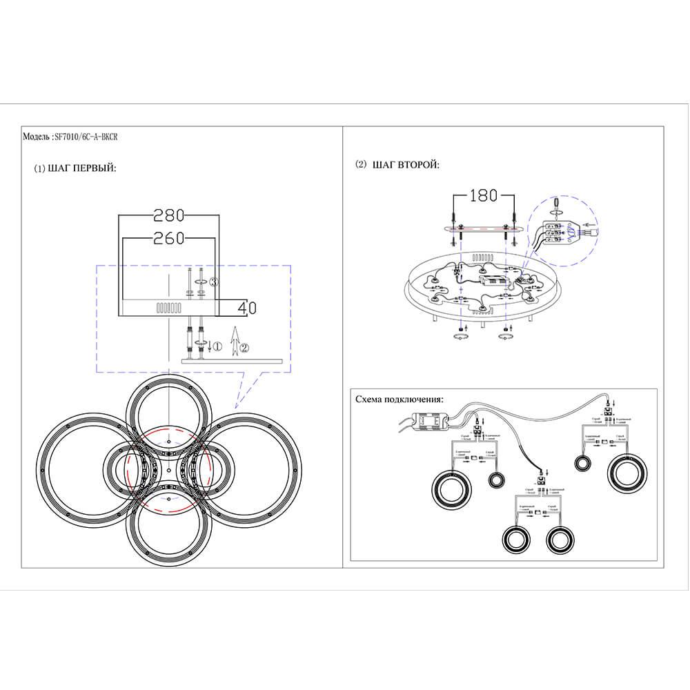 Потолочная светодиодная люстра Seven Fires Eveik SF7010/6C-A-BKCR от Российского бренда Seven Fires из коллекции Eveik будет удачно смотреться в гостиной в хай-тек стиле. Светильник выполнен из акрила с плафонами в форме круга черного цвета.