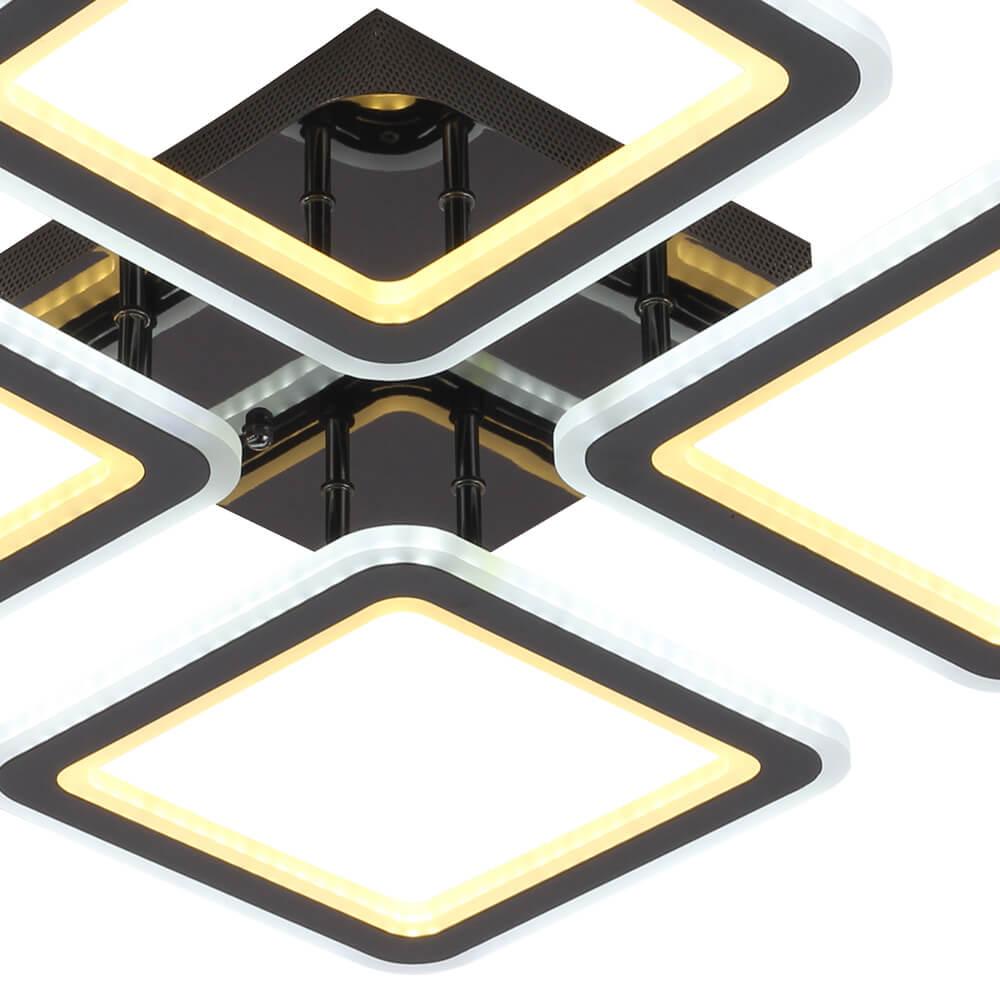 Потолочная светодиодная люстра Seven Fires Loretta SF7011/4CL-BKCR от Российского бренда Seven Fires из коллекции Loretta будет удачно смотреться в спальни в хай-тек стиле. Светильник выполнен из акрила с плафонами в форме квадрата черного цвета.