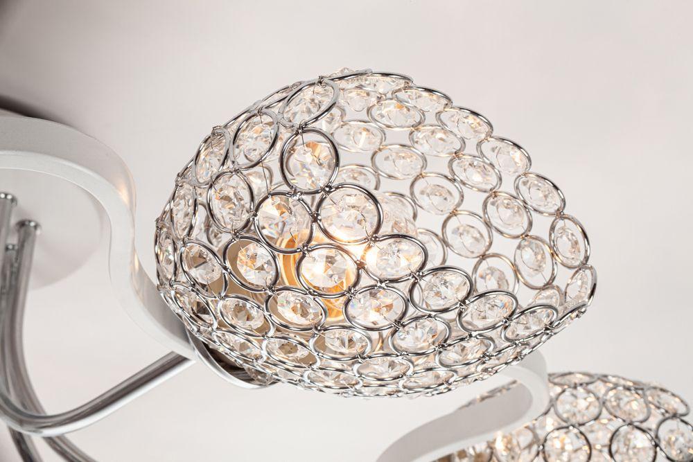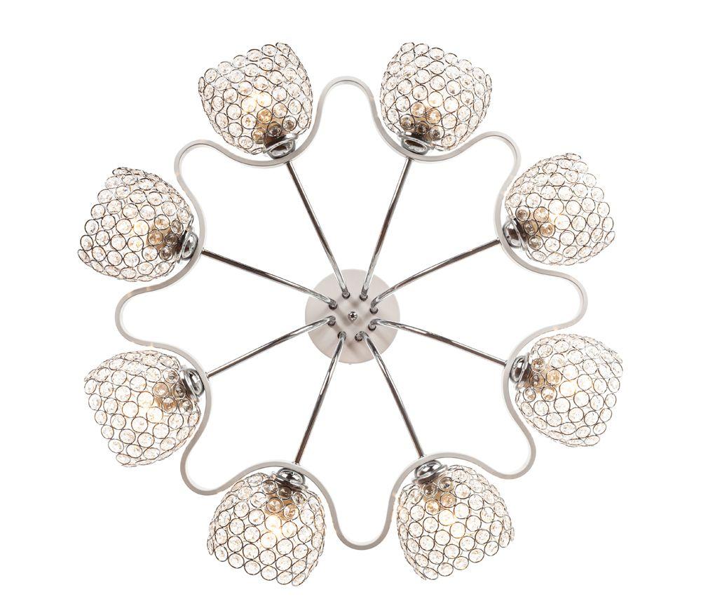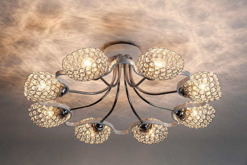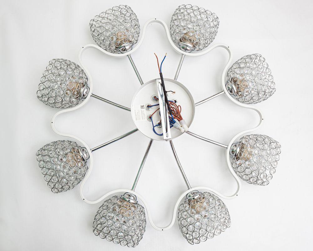 Производитель светильника рекомендует для устройства 8 ламп накаливания с цоколем E27 и мощностью 60 W, что позволит осветить помещение площадью 26,7 кв.м. Габариты изделия: высота – 250 мм, диаметр – 710 мм.