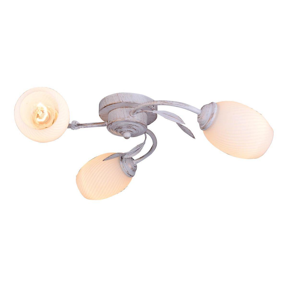 Производитель светильника рекомендует для устройства 3 лампы накаливания с цоколем E27 и мощностью 60 W, что позволит осветить помещение площадью 10 кв.м. Габариты изделия: высота – 120 мм, диаметр – 560 мм.
